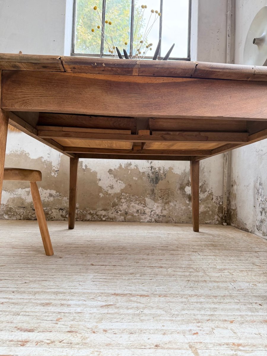 Mesa antigua grande fabricada íntegramente en roble macizo de la década de 1950.