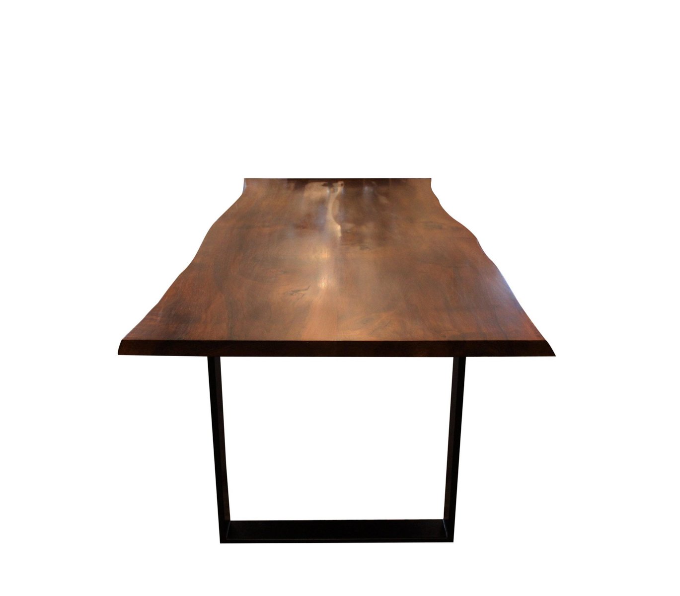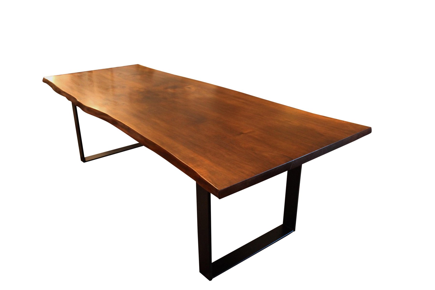 Mesa de tablones con estructura de metal negro y nogal