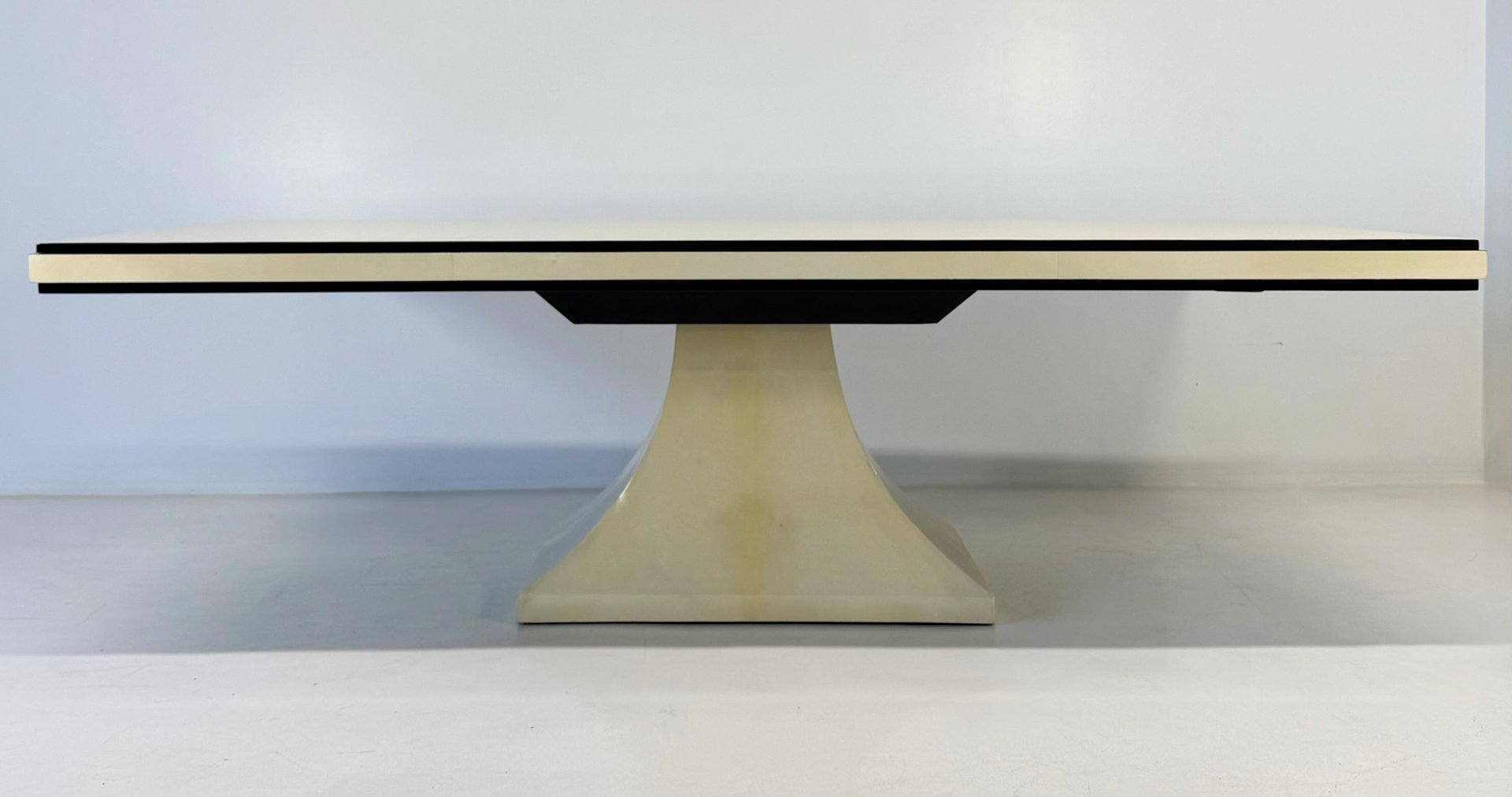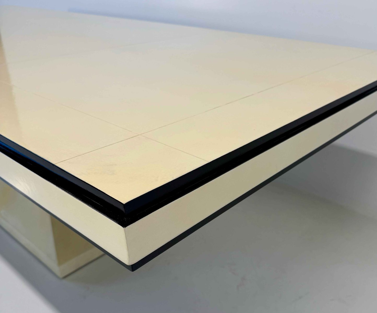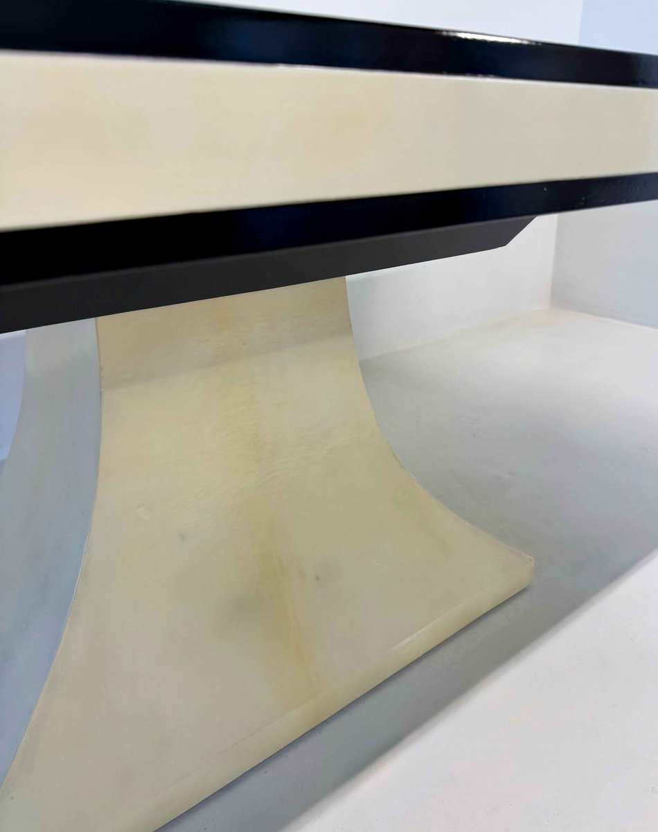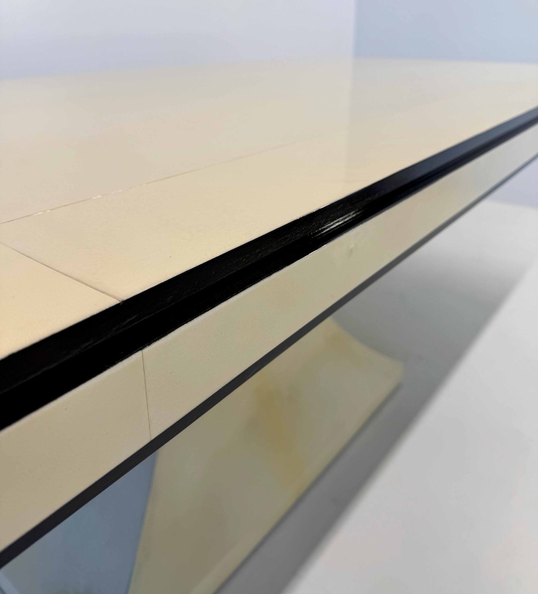 Mesa italiana Art Déco de cuero pergamino con perfiles negros, años 40