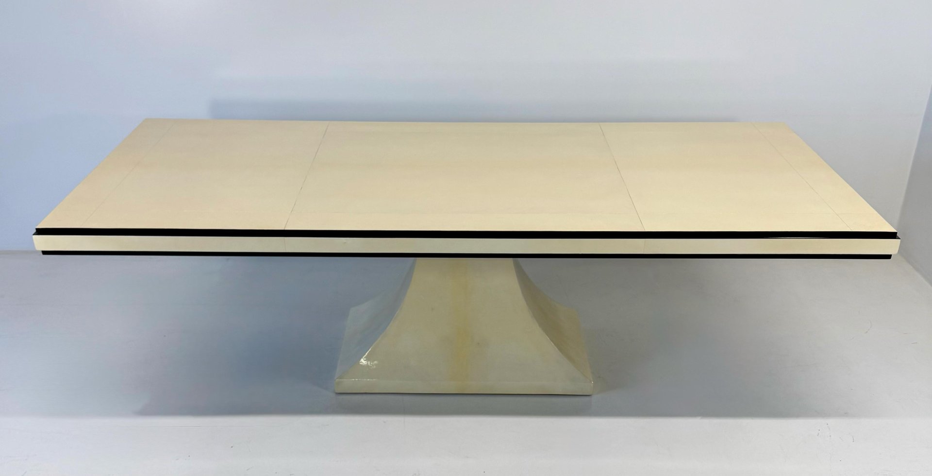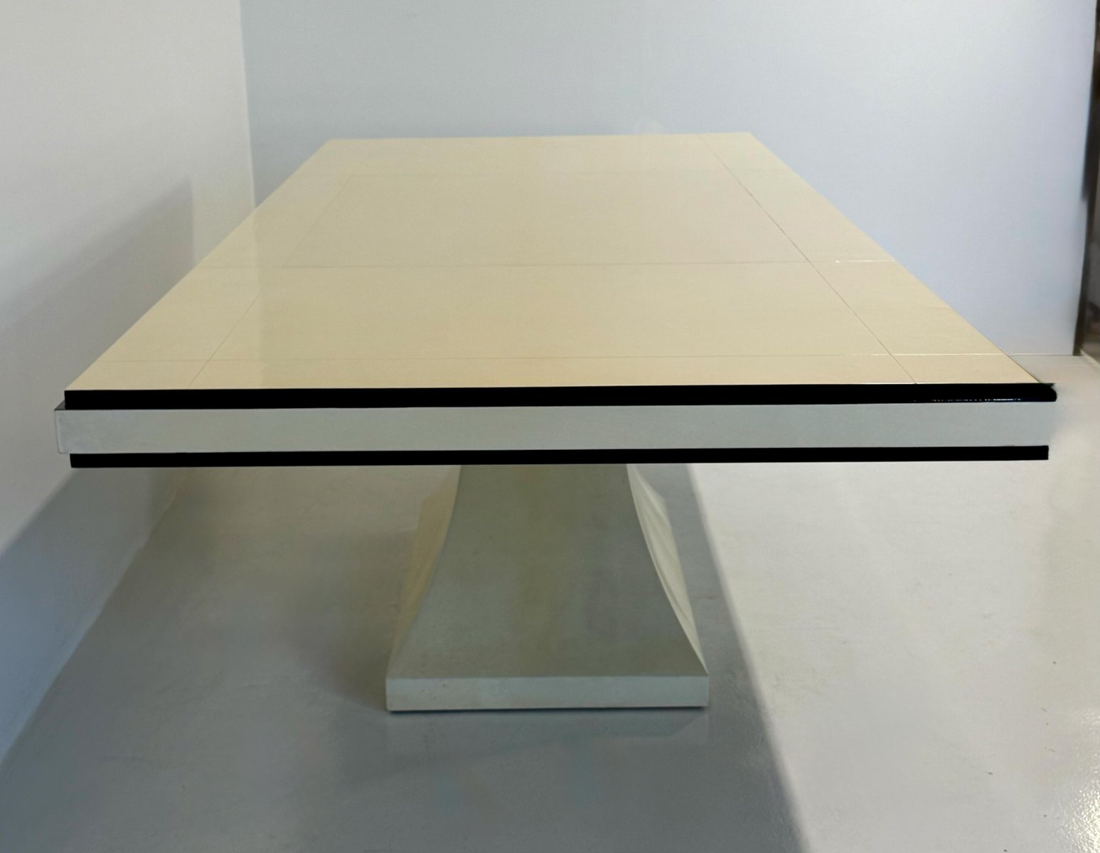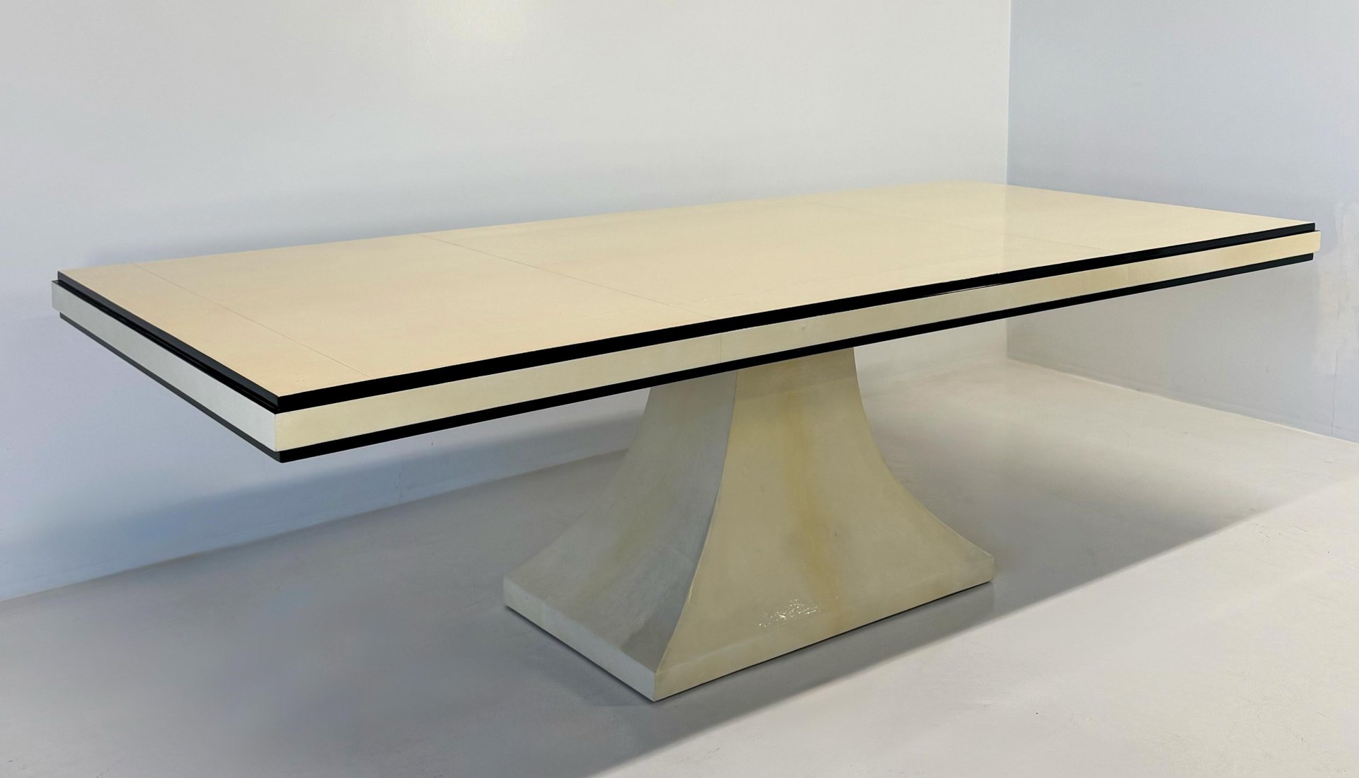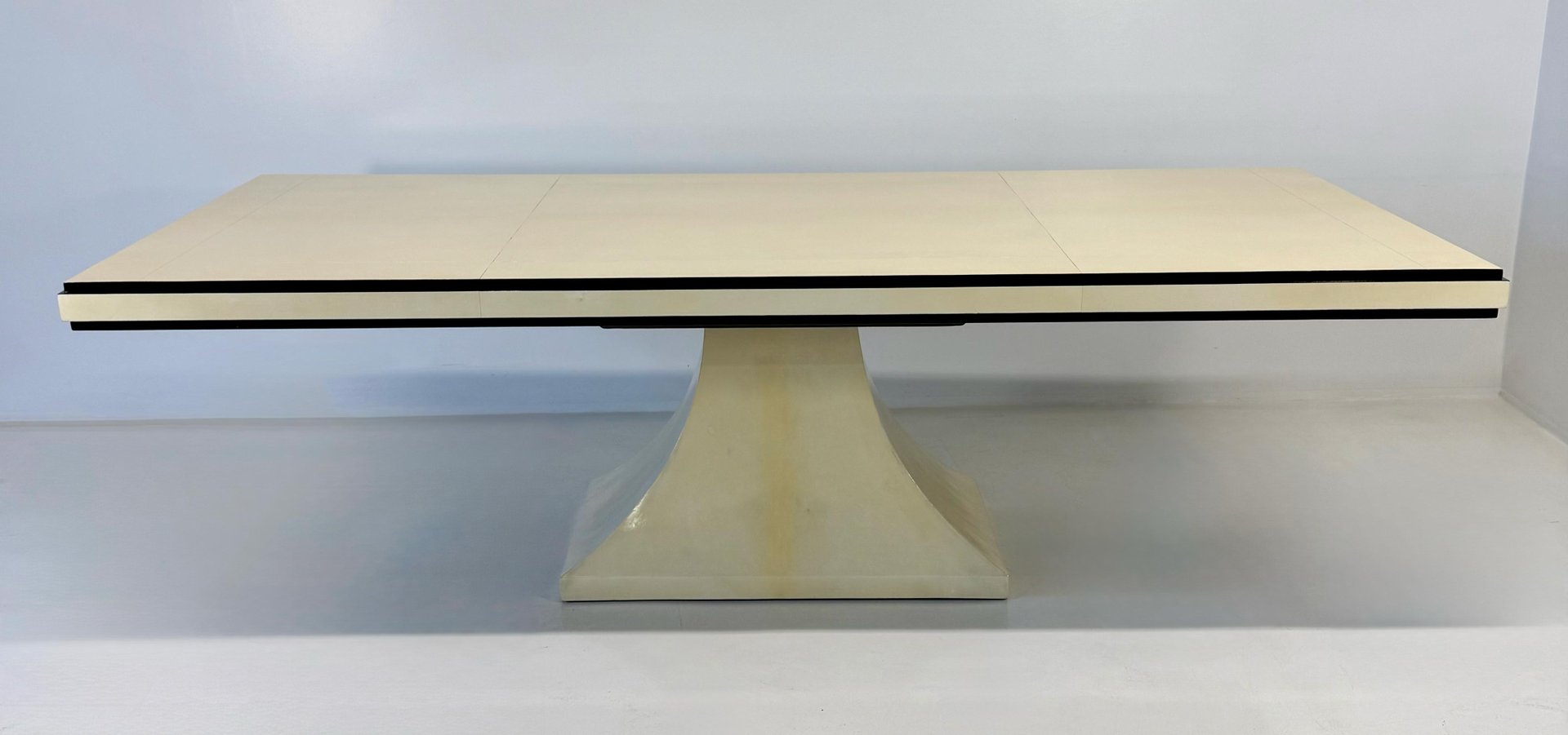 Mesa italiana Art Déco de cuero pergamino con perfiles negros, años 40