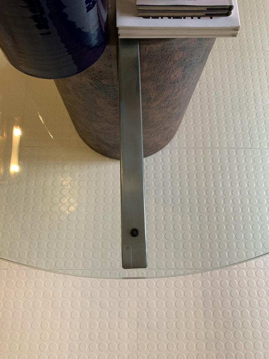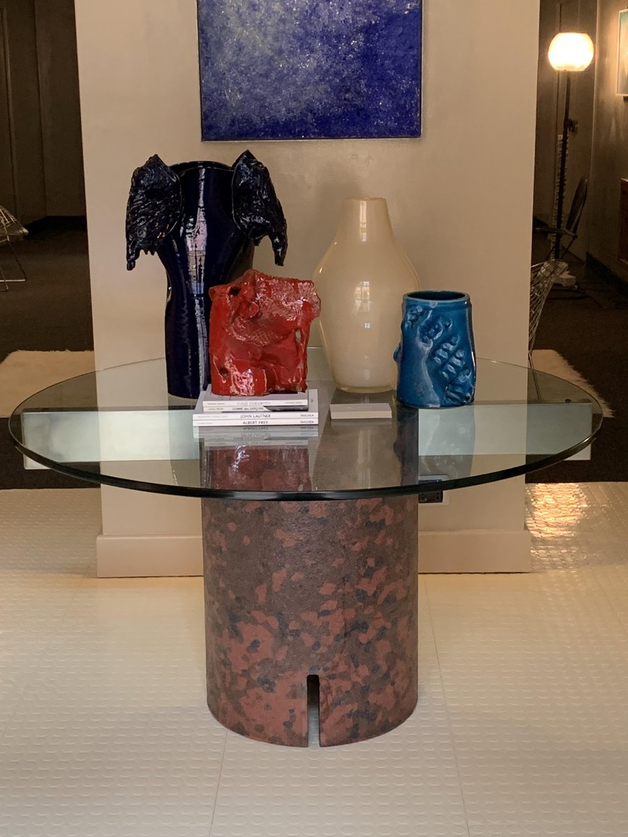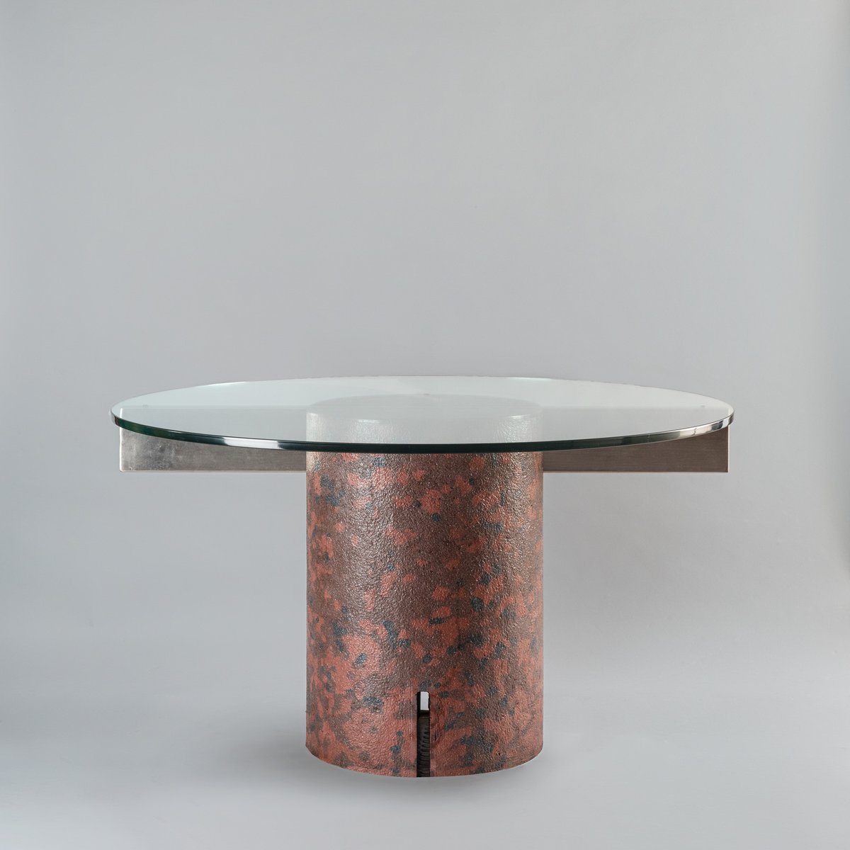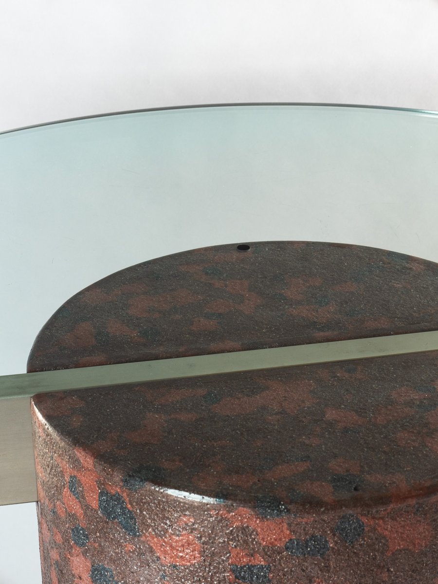 Mesa redonda de hormigón con estampado de camuflaje y superficie de vidrio de Giovanni Offredi para Saporiti, Italia, años 70