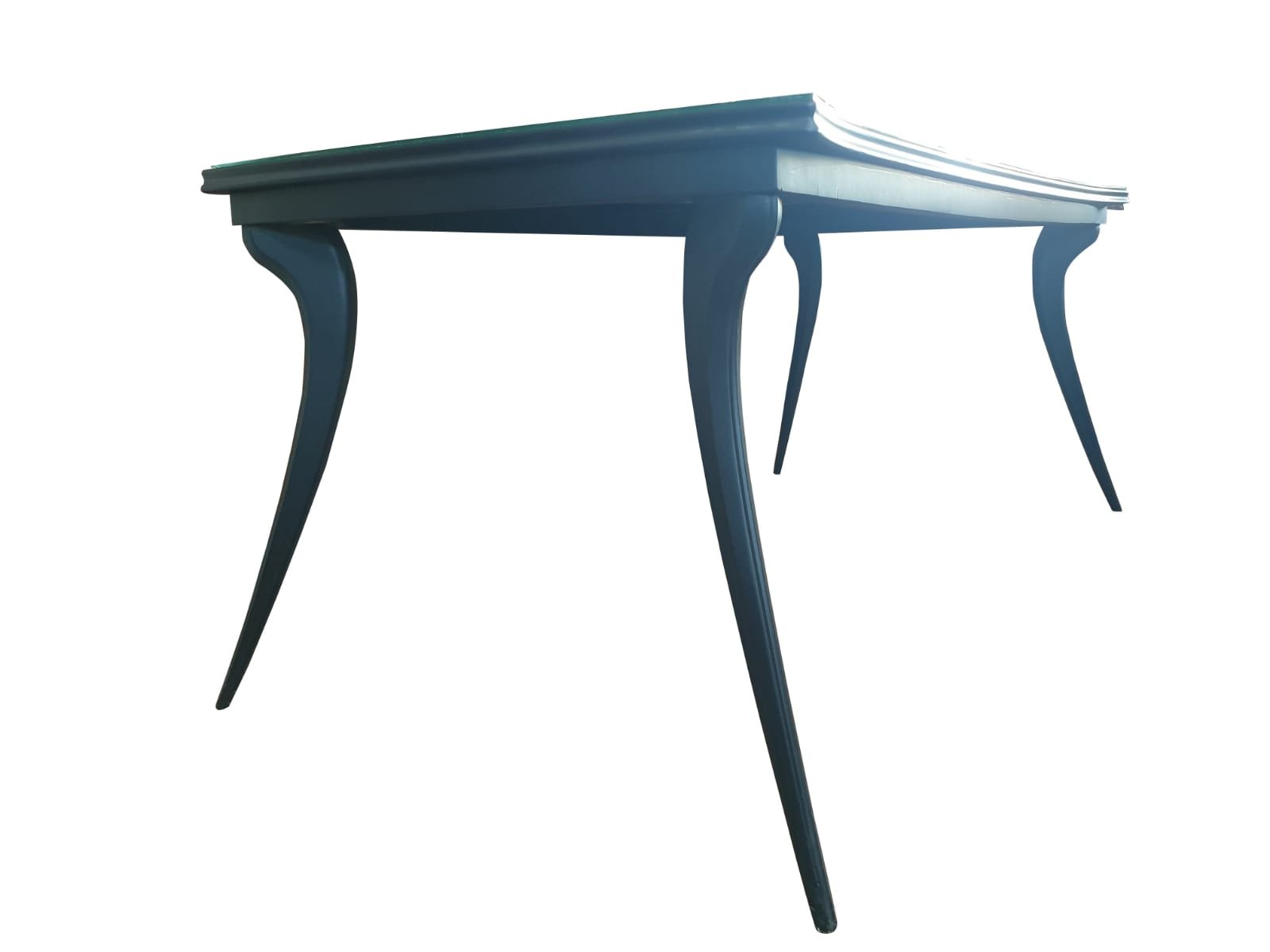 Mesa vintage con superficie de vidrio de imitación de mármol verde y patas curvadas, años 50