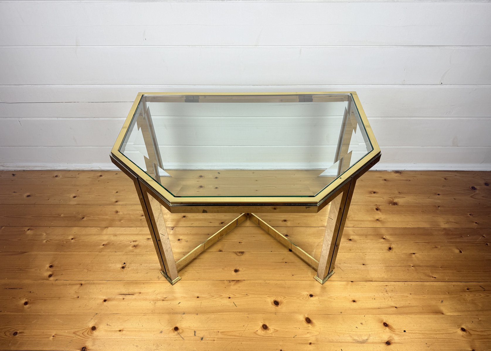Mesas auxiliares Mid-Century modernas de latón y vidrio de Vereinigte Werkstätten München, años 70. Juego de 2