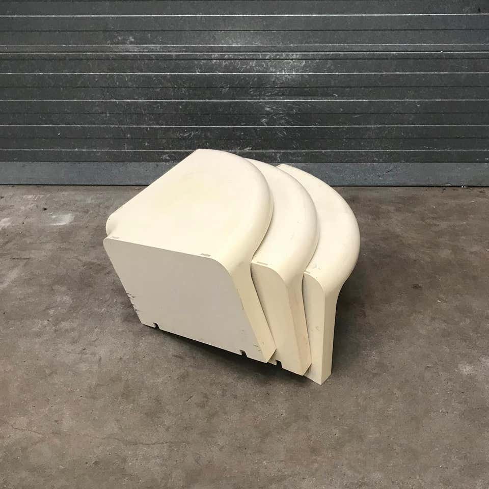 Mesas auxiliares redondas en blanco roto de Bonetto para Bernini, años 70. Juego de 3