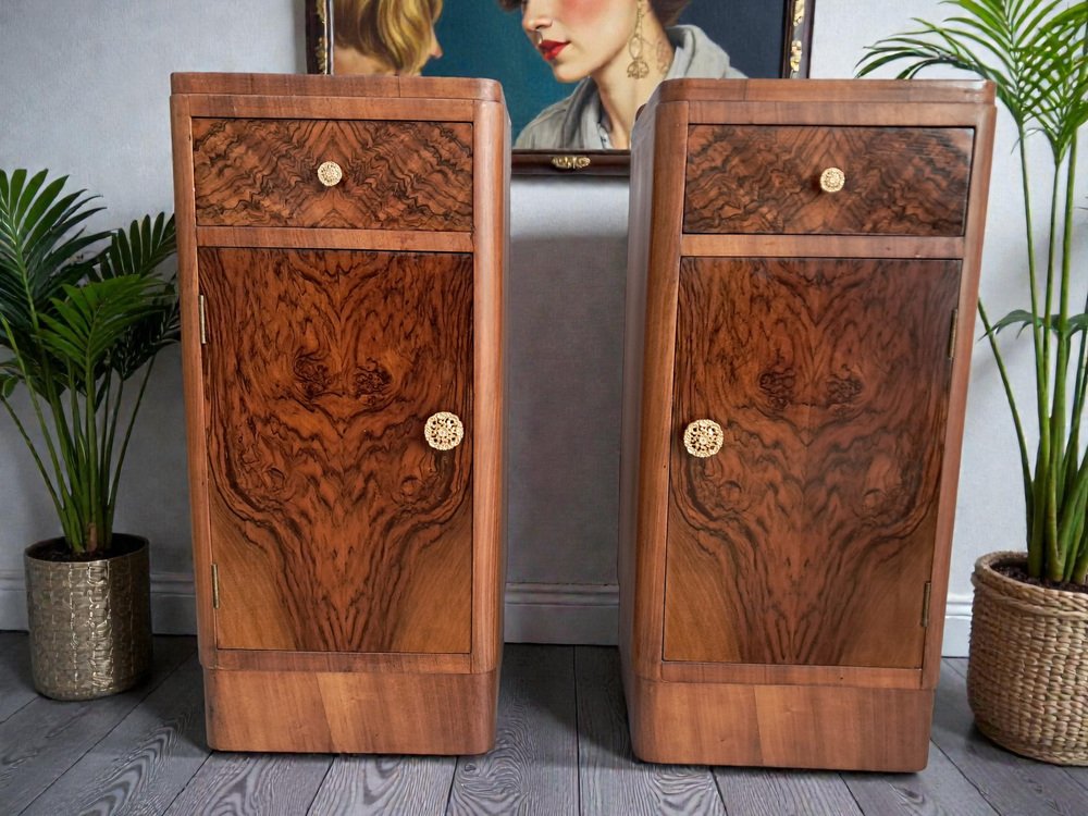 A rare opportunity to acquire a true matching pair of original Art Deco bedside cabinets — statement pieces that deliver both style and practical storage.
