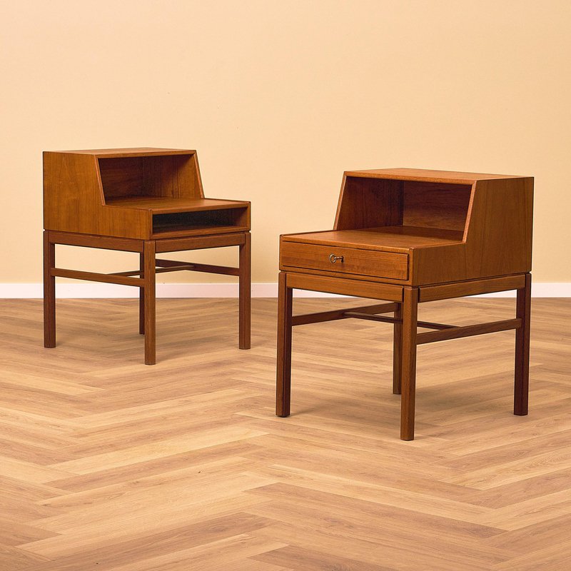 Mesitas de noche Casino suecas de teca de Gunnar Myrstrand & Sven Engström, años 50. Juego de 2