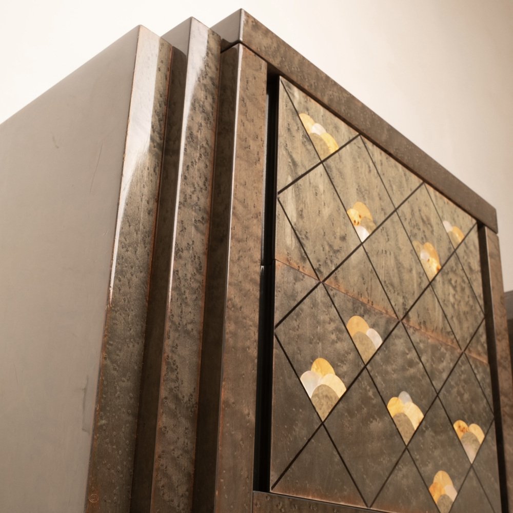 The distinctive element of his career emerged with the realization of his dream: furniture as a unique piece. Frigerio, supported by a team of technicians, created the "Solid wood sculpture furniture" and the "Bronze cast sculpture beds", representing a unique alternative to the industrial production of the time. These unique pieces embody excellent craftsmanship and the fusion of fine materials, positioning themselves as works of art in the design landscape.