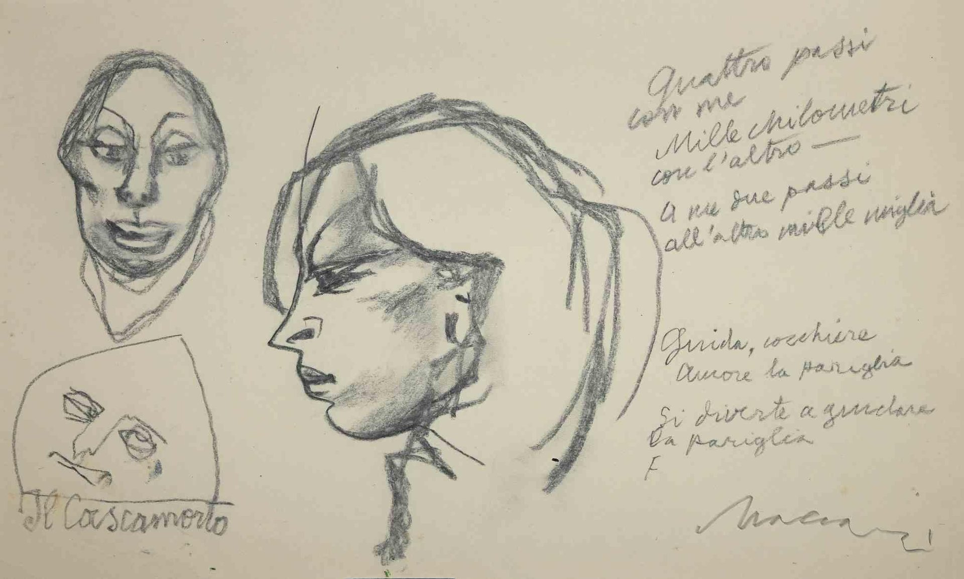 Mino Maccari, The Profile, dibujo original, mediados del siglo XX