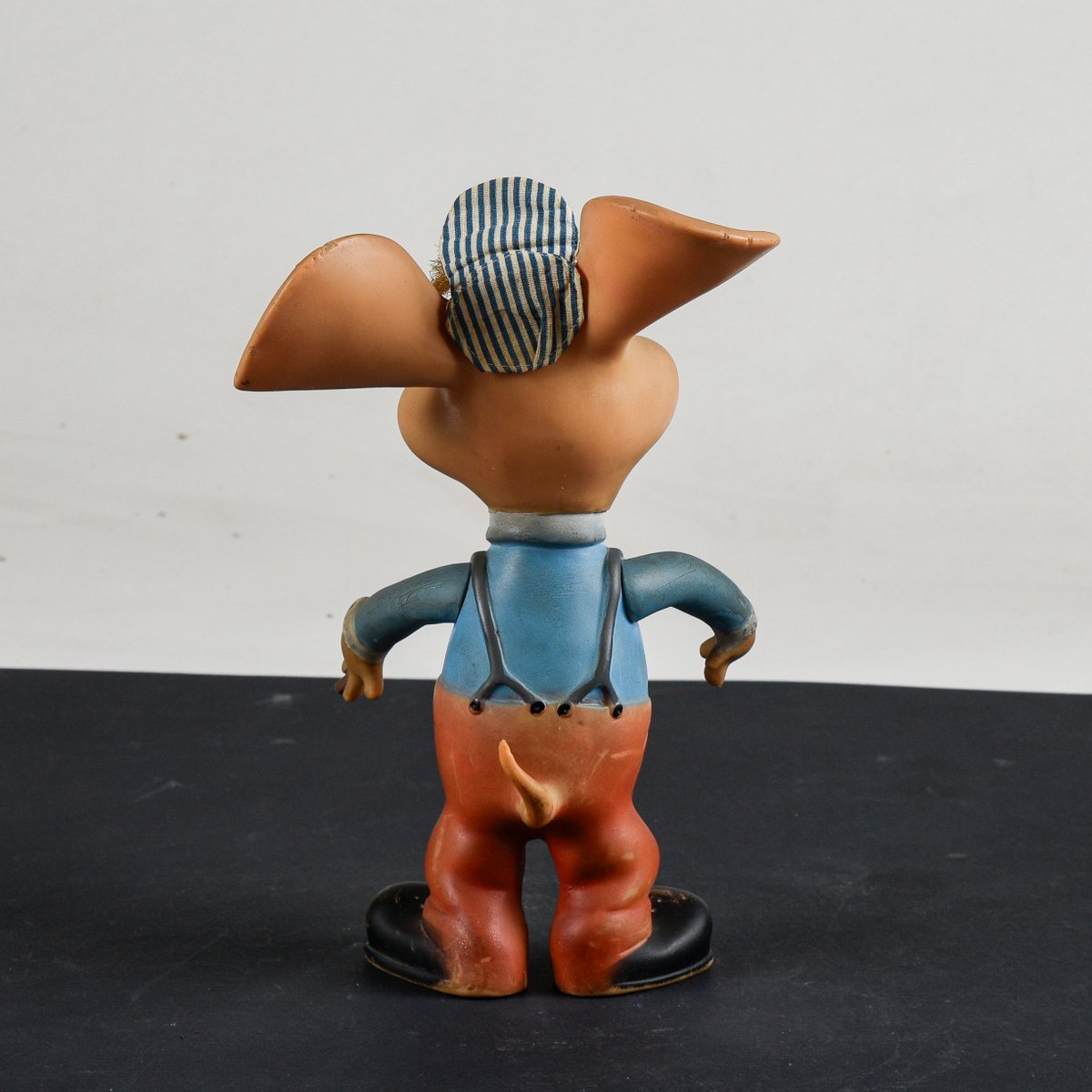 Dimensions: 19 x 24 x h 28 CATEGORY toy STYLE vintage DIMENSIONS: HEIGHT 28 cm WIDTH 19 cm DEPTH 24 cm COLOR: pink light blue brown black red white MATERIAL: rubber fabric CONDITION: Very good, the vintage item has no defects but may show slight traces of wear