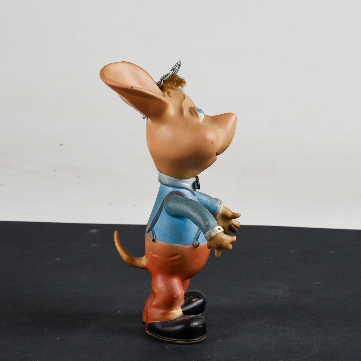 Dimensiones: 19 x 24 x h 28 CATEGORÍA juguete ESTILO vintage DIMENSIONES: ALTURA 28 cm ANCHURA 19 cm PROFUNDIDAD 24 cm COLOR: rosa azul claro marrón negro rojo blanco MATERIAL: tela de caucho ESTADO: Muy bueno, el artículo vintage no tiene defectos pero puede mostrar ligeras huellas de desgaste