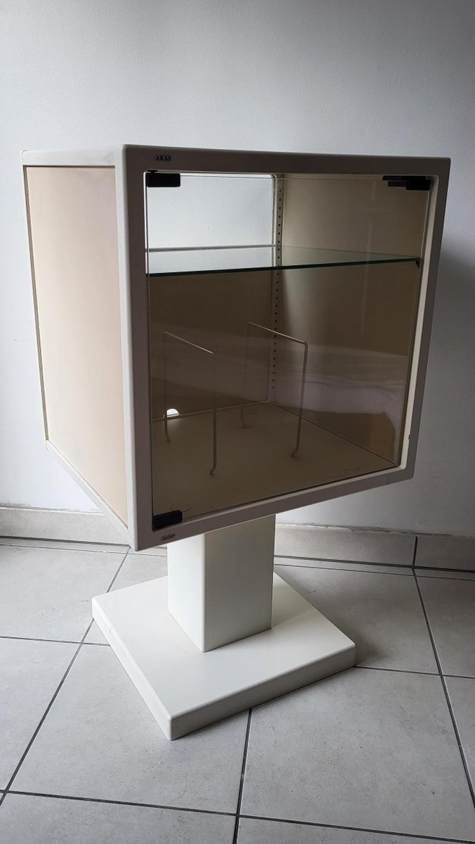 The Akai Cube hi-fi cabinet, emblematic of 1980s design, combines aesthetics and functionality with its white melamine finish. Its thoughtful design includes a sleek interior glass shelf, perfectly suited to accommodate a turntable, while a compartment underneath provides convenient space for storing records. Rare and unique, this piece of furniture is not only a decorative element, but also a true testimony to the evolution of musical culture. For vintage enthusiasts, some of these pieces of furniture are even exhibited in hi-fi museums, testifying to their importance in the history of audio design. Thus, the Akai Cube hi-fi cabinet is not limited to a simple function; it embodies an era where sound and style come together harmoniously.