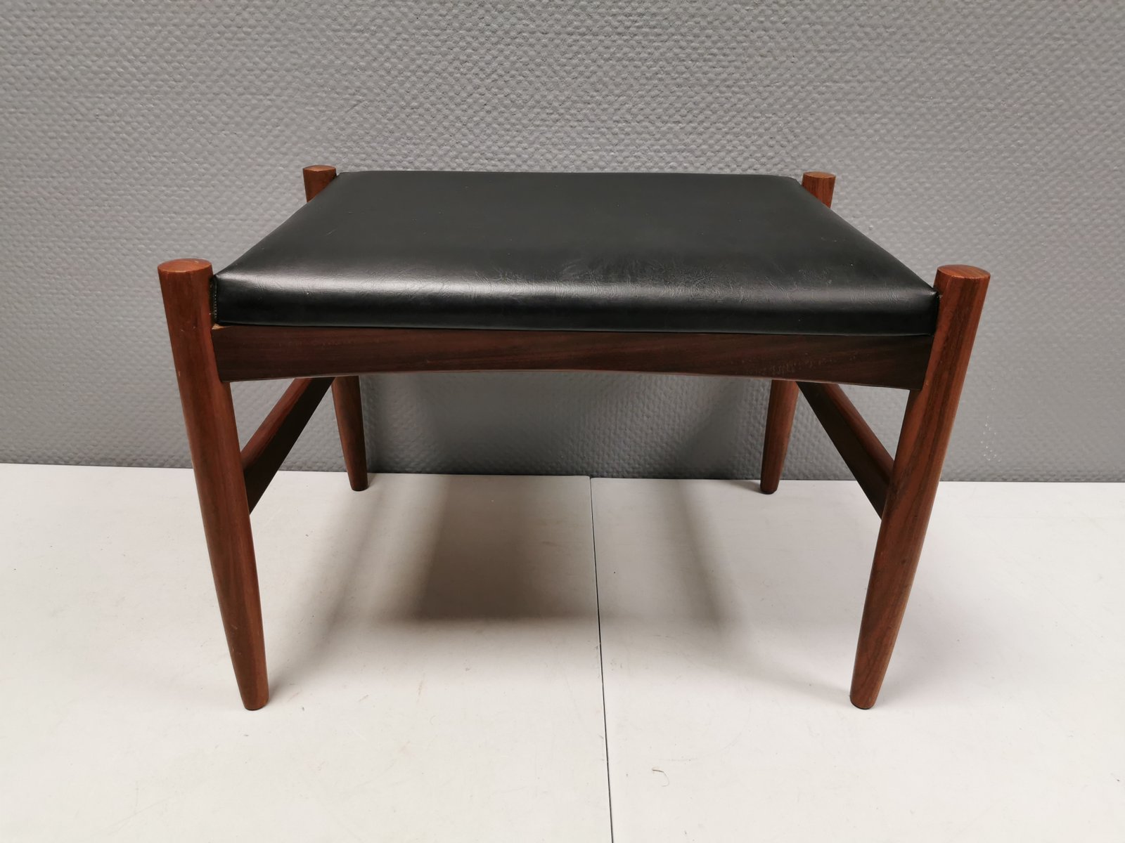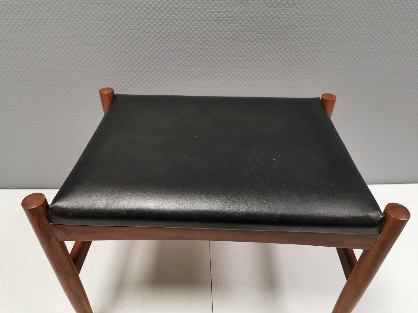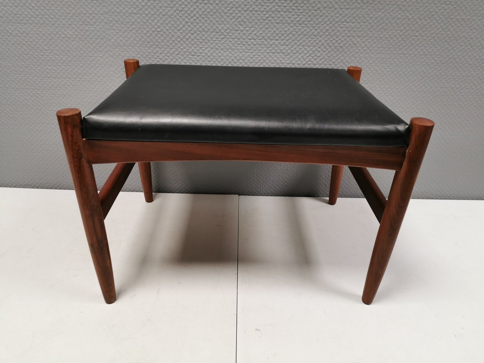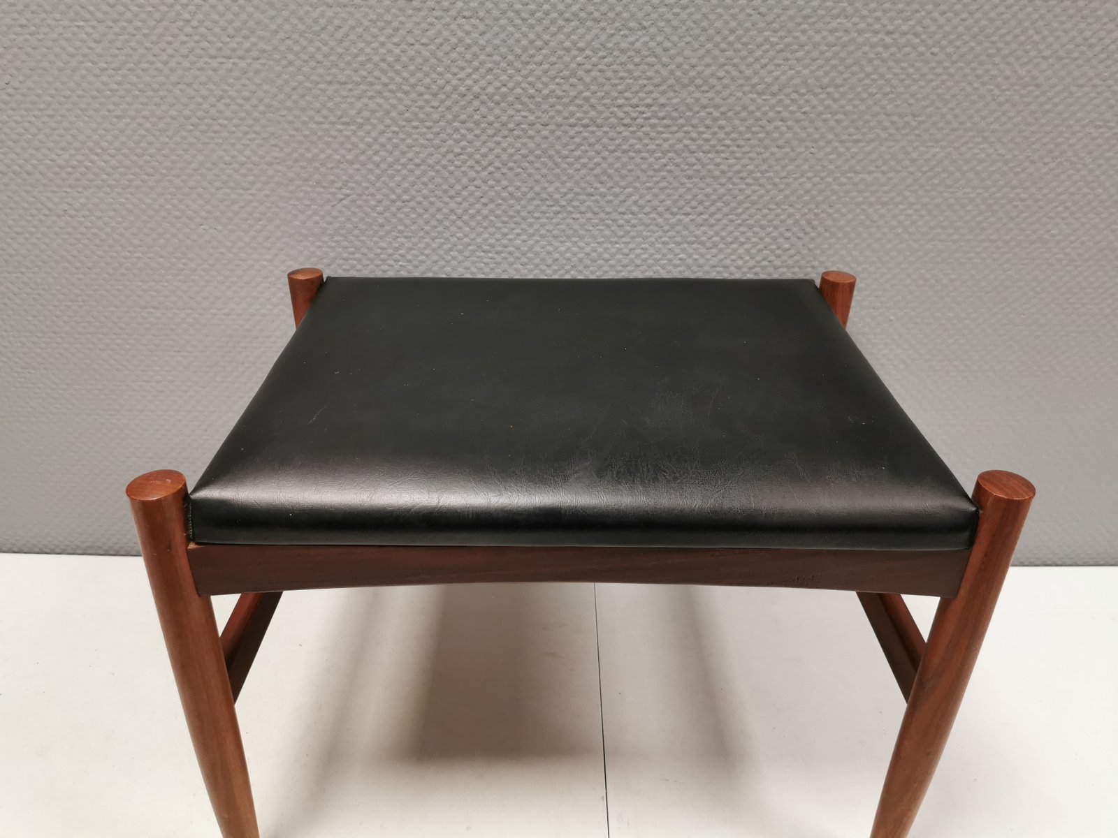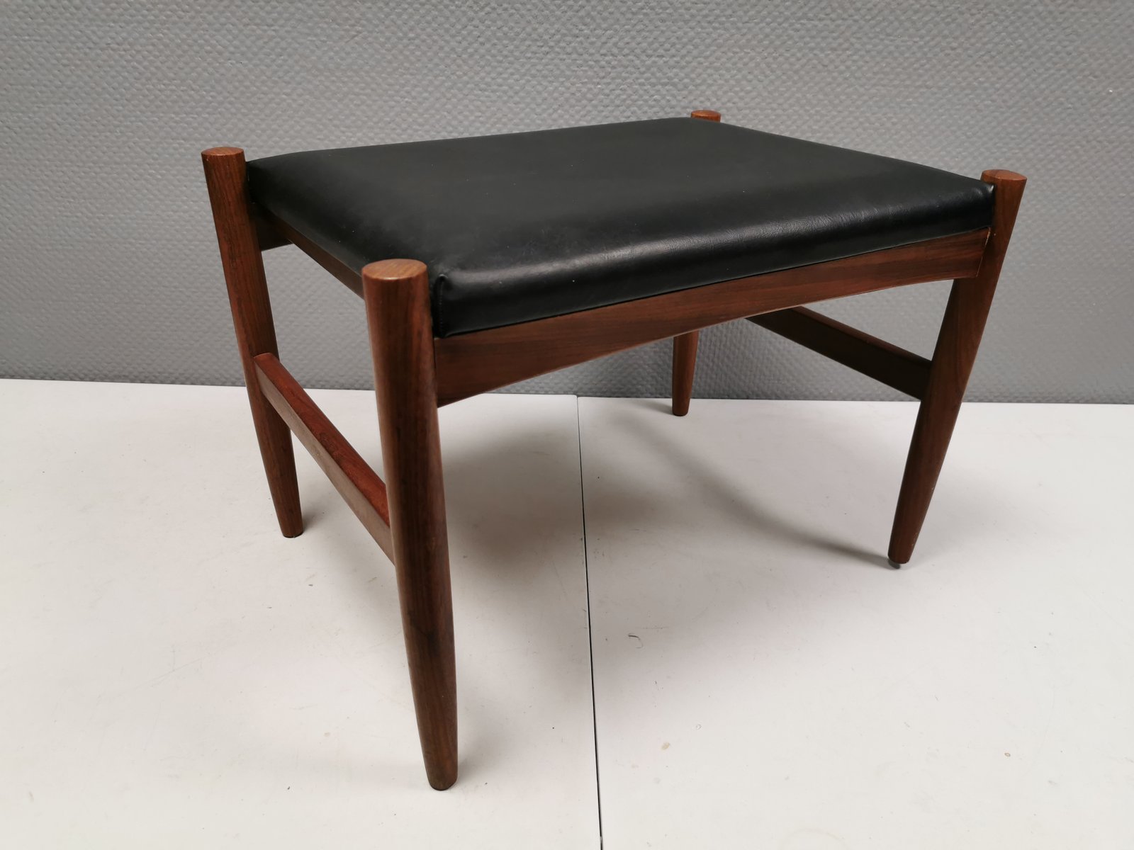 Otomana danesa de madera de teca y cuero sintético de escay negro, años 60