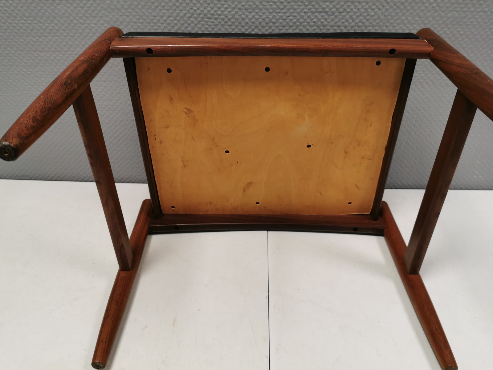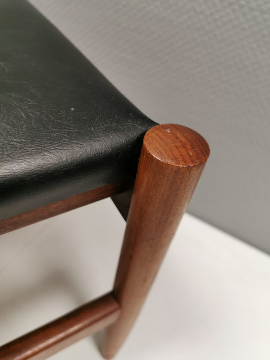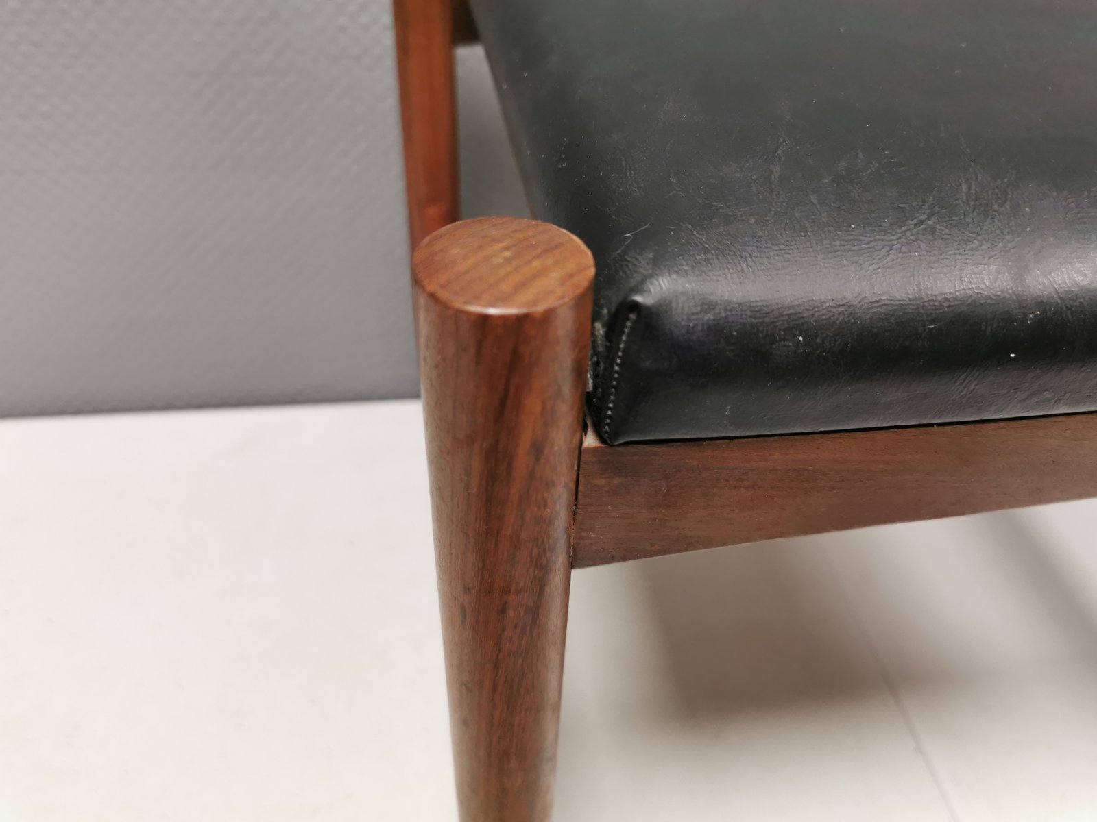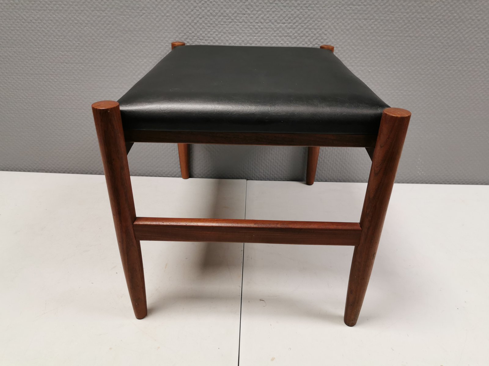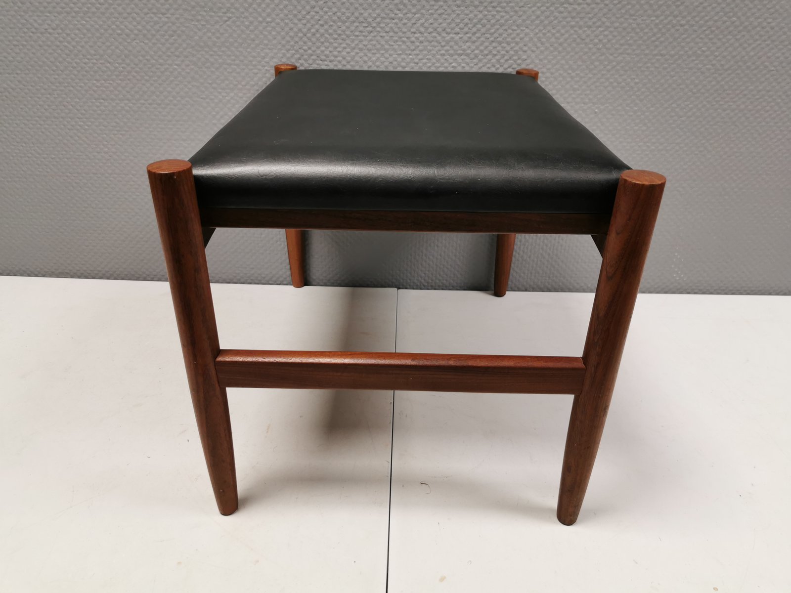 Otomana danesa de madera de teca y cuero sintético de escay negro, años 60