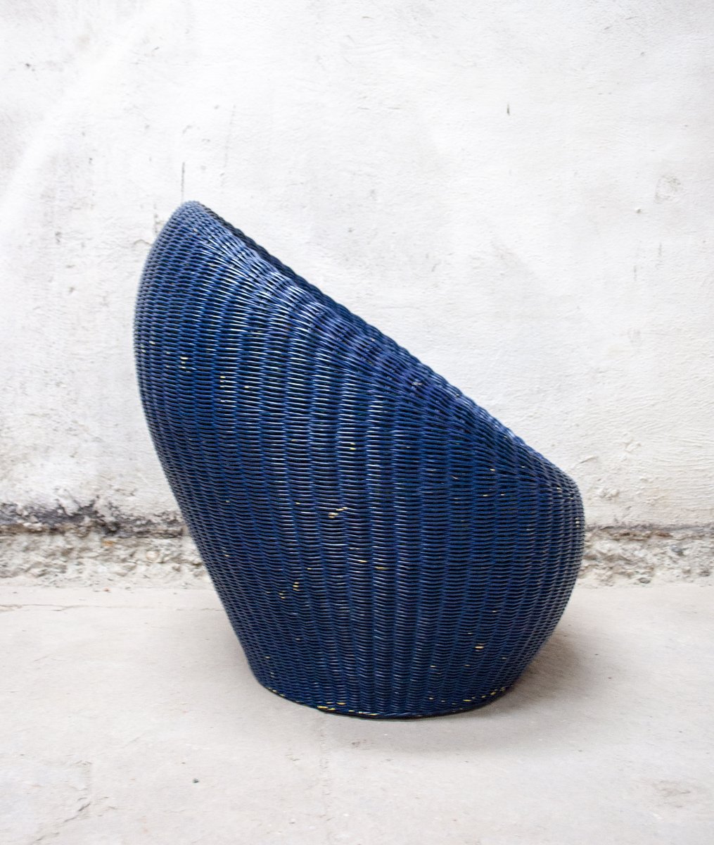 Otomana italiana vintage de mimbre, años 60