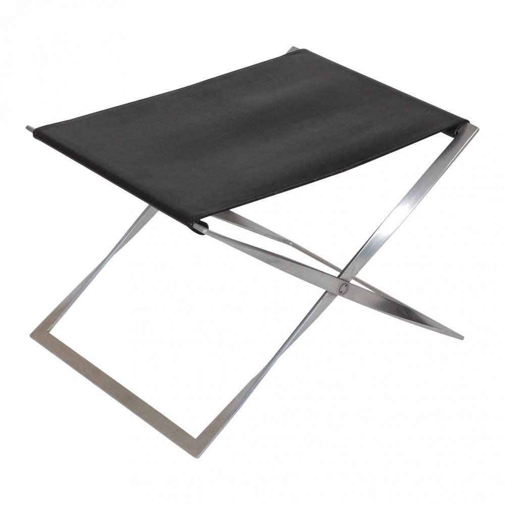 While most of his contemporaries were designing entirely with wood, Kjærholm choose to exploit unnatural materials such as steel, in combination with natural ones like wood, canvas and leather. Admiring the refraction of light that the metal produced, he used steel frames extensively in his work. He was also a strong proponent of industrial production and maintained the belief that architecture was an important component in furniture design. Kjærholm’s pieces were named by number only, signifying his dedication to create furniture that would be recognized for its form. E. Kold Christensen had a deep understanding of Kjærholm’s aesthetic and gave him complete artistic freedom with his designs. The first successful piece produced by the partnership was a minimalist chair that is reminiscent of Mies van der Rohe’s famous Barcelona Chair (1929). The PK22 (1956), which was designed from a single sheet of steel, was an instant commercial success launching both the designer's and manufacturer's careers. In 1957, the chair won the Grand Prix at Milan’s Triennale. Famous designs from this fruitful partnership include Kjærholm’s PK61 coffee table (1955), PK80 daybed (1957), PK33 stool (1959), PK9 Tulip Chair (1961), and the wicker and steel PK24 chaise lounge (1965).