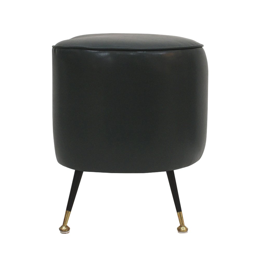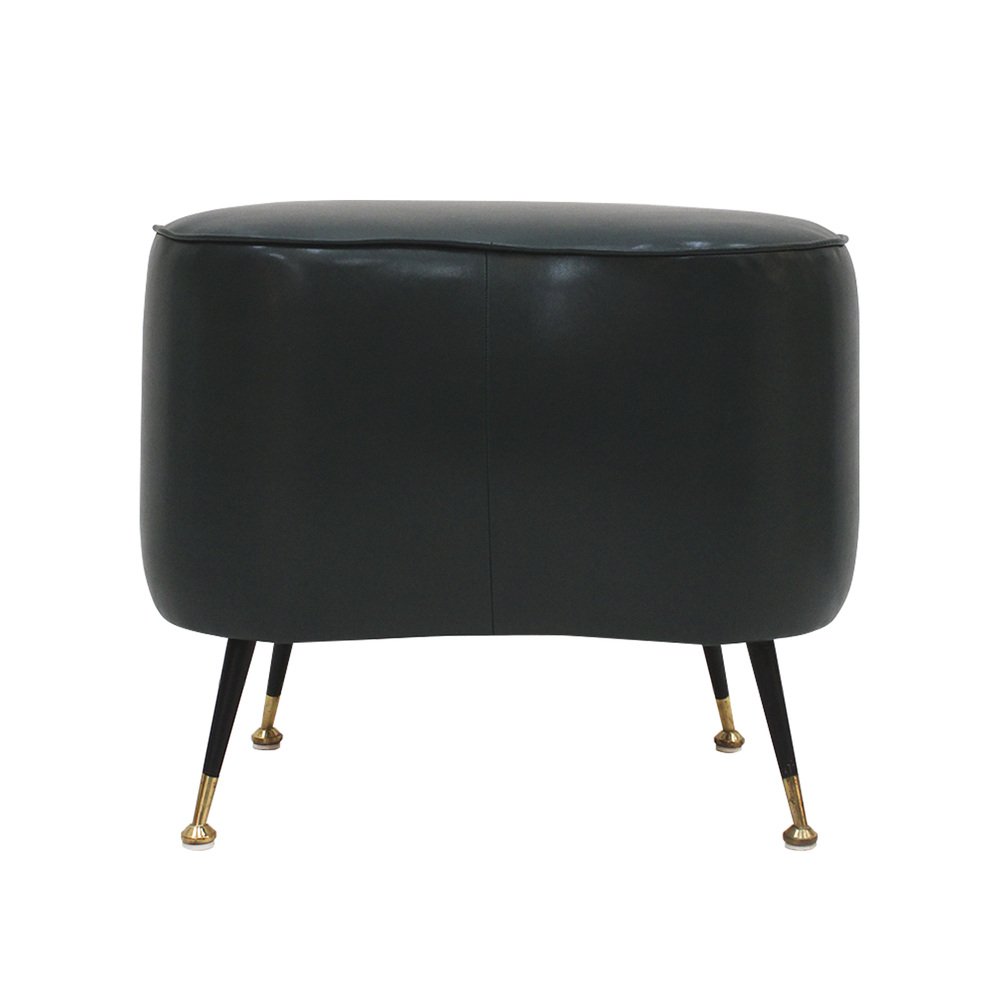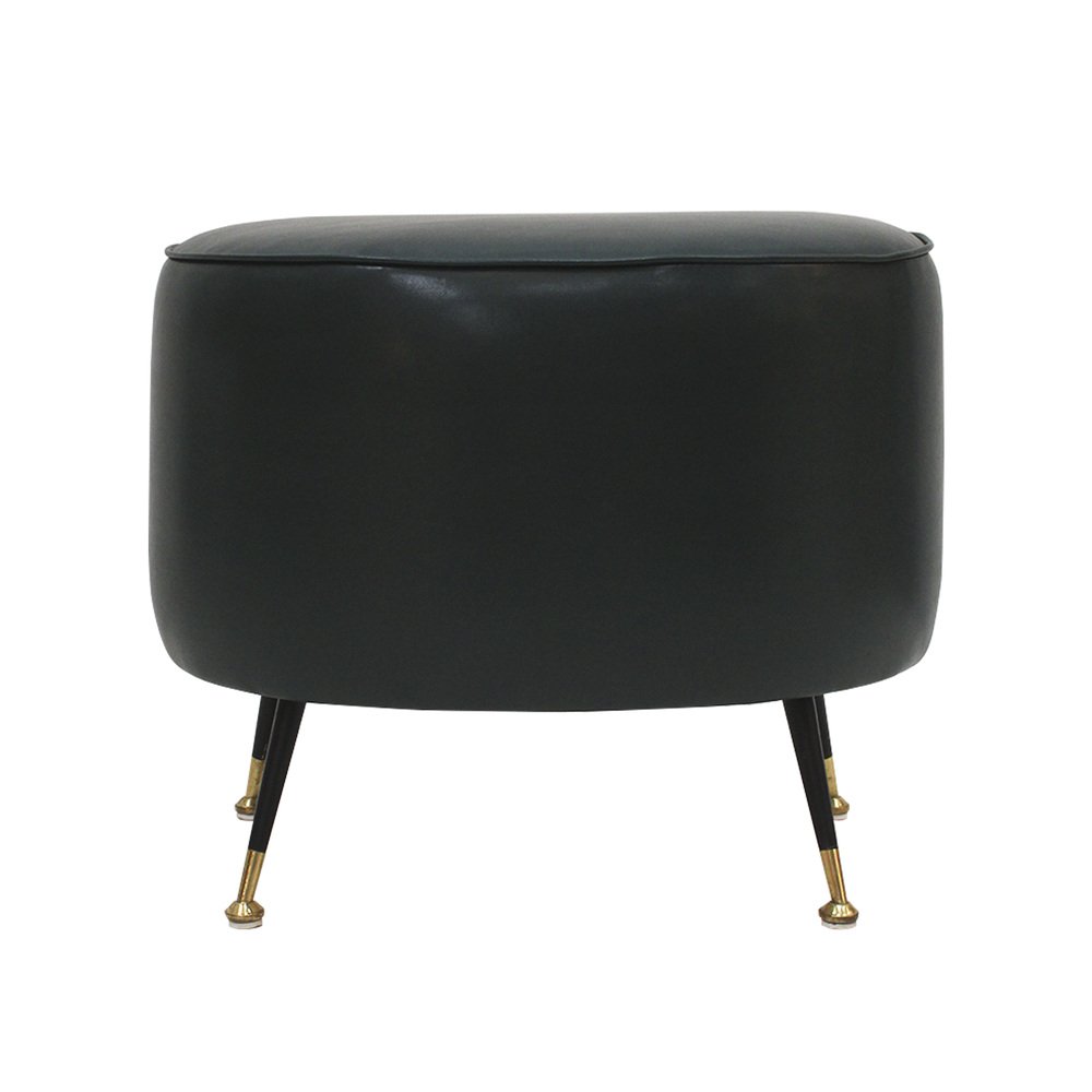 The green faux-leather upholstery offers a uniform surface that introduces subtle colour while maintaining a restrained visual presence. The brass-tipped legs provide a material detail that reinforces the mid-century Italian identity of the piece. The footstools retain their original character, with well-preserved finishes and solid construction, making them ready for immediate use. This pair is suitable for residential interiors, hospitality environments or curated spaces seeking genuine 1960s Italian pieces that integrate easily into contemporary or vintage-inspired settings.