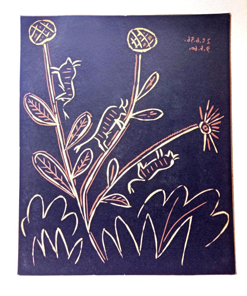 Pablo Picasso, Flores / Plante aux Toritos, Grabado original en linóleo, 1962