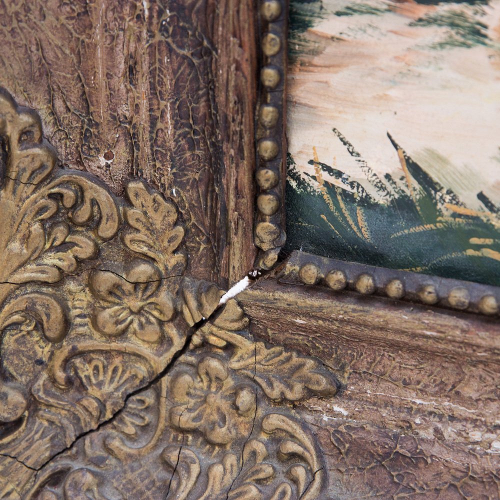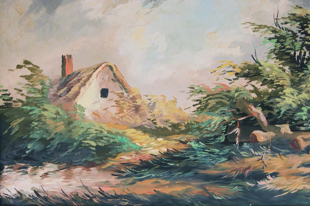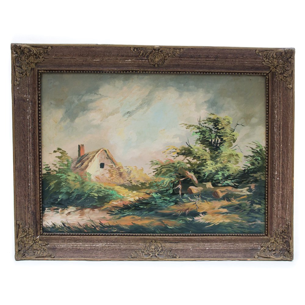 Paisaje con choza, óleo sobre lienzo, enmarcado