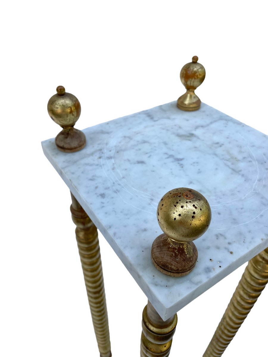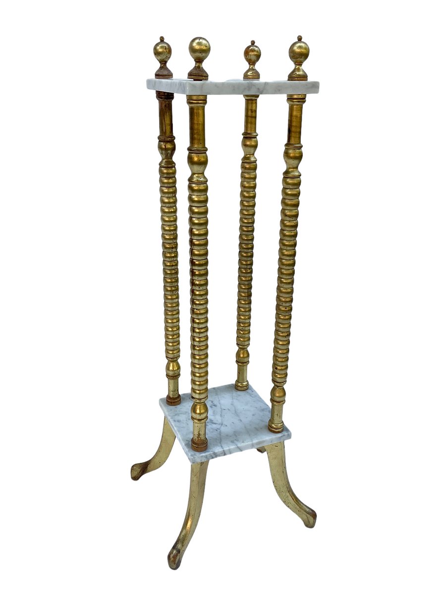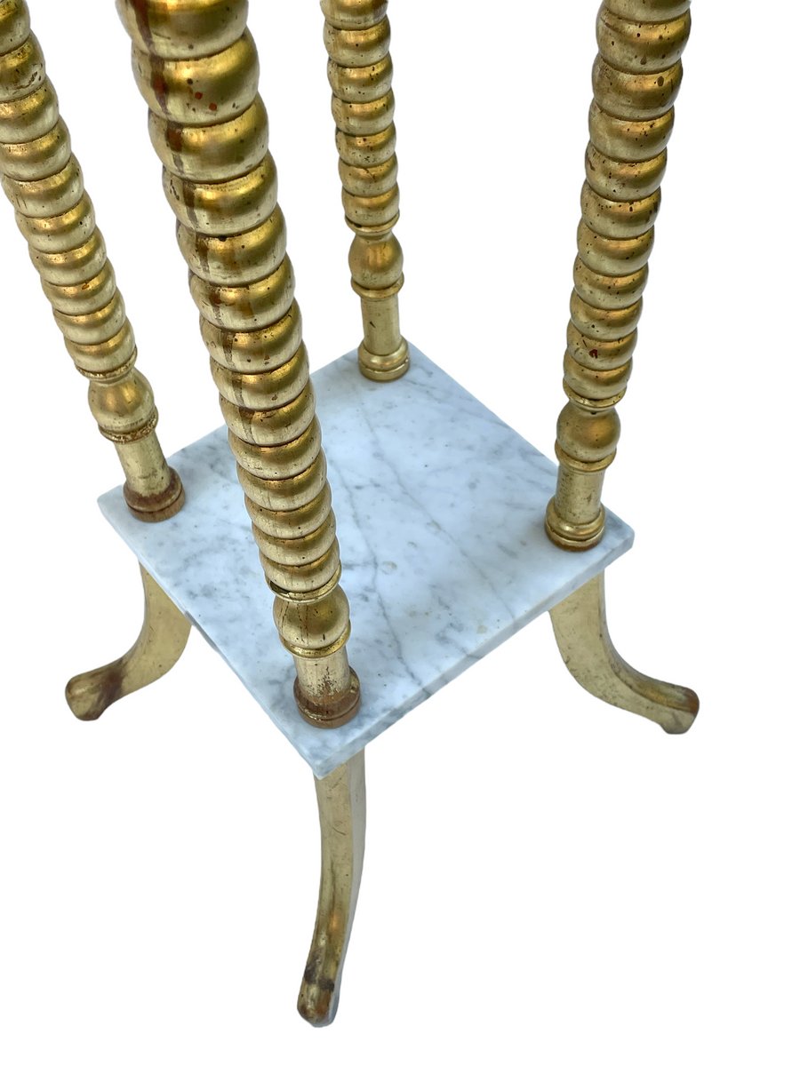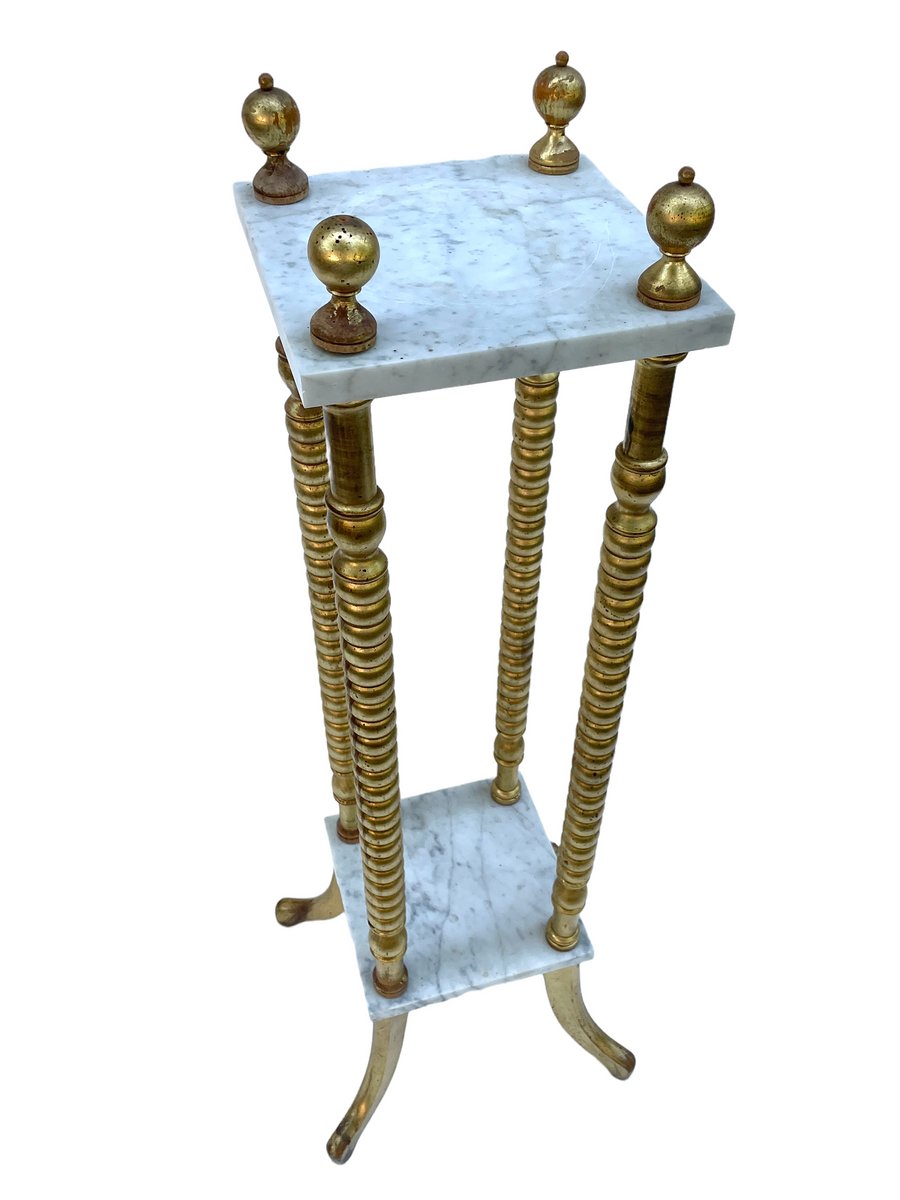 Pedestal con tablero de mármol y patas doradas