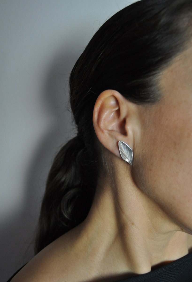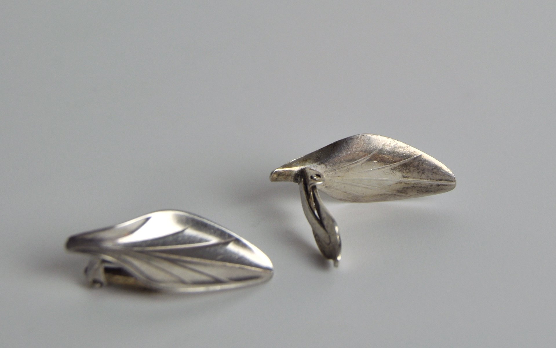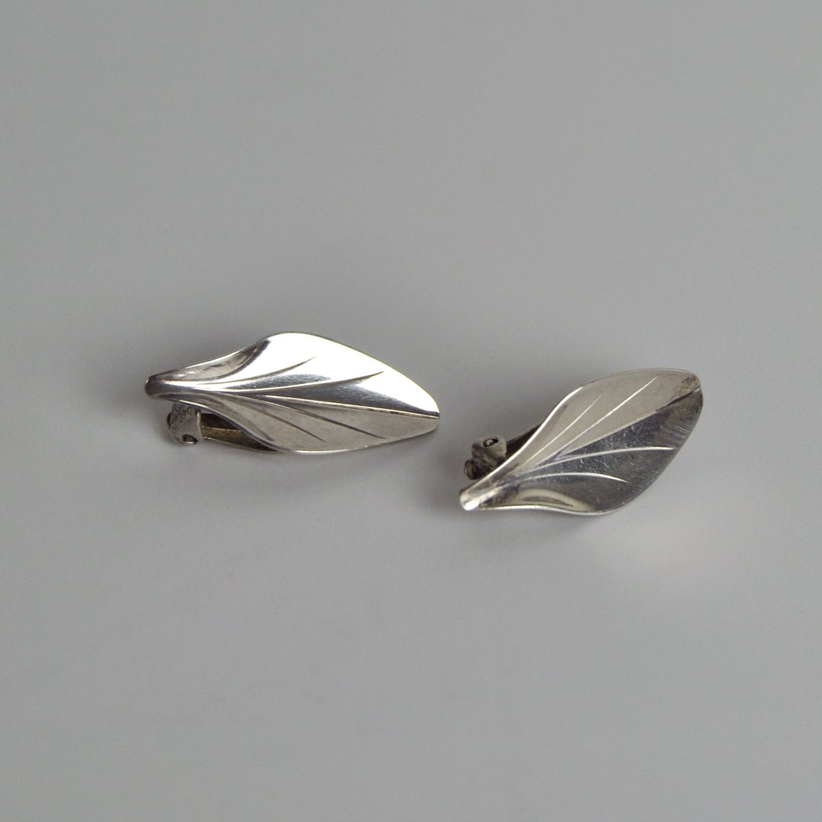 Pendientes modernistas en forma de hoja de plata de ley de Hermann Siersbøl, años 50. Juego de 2