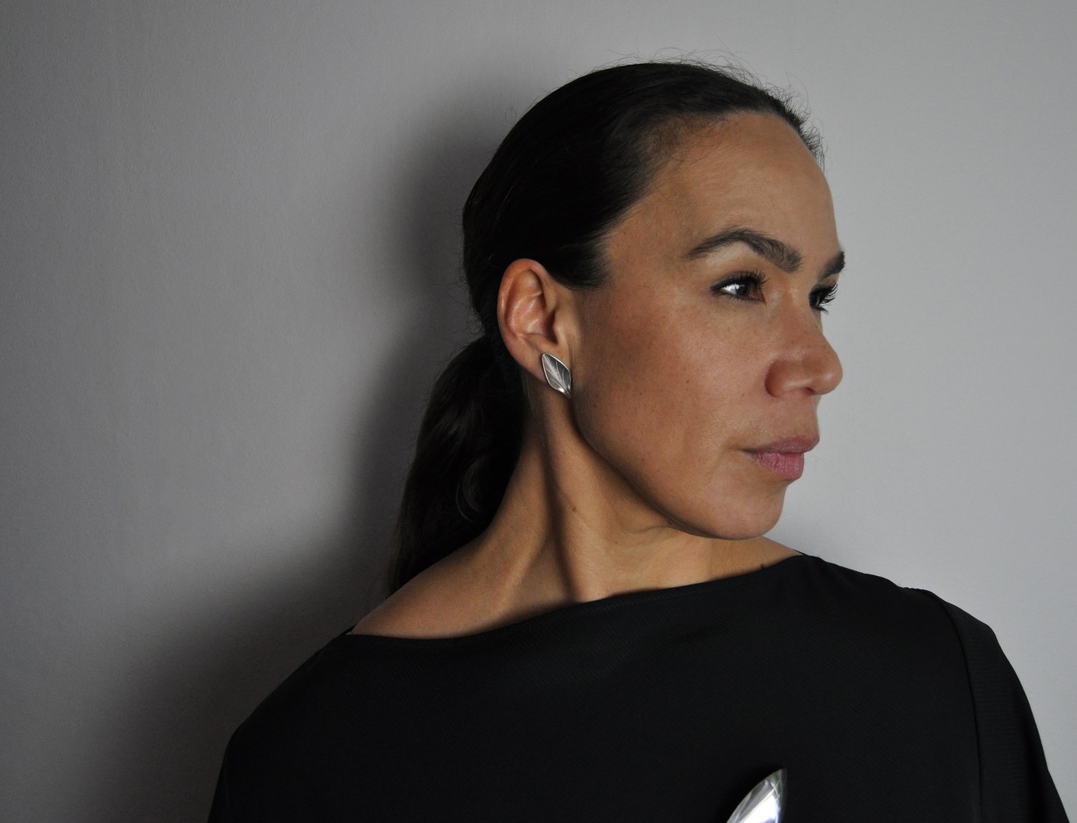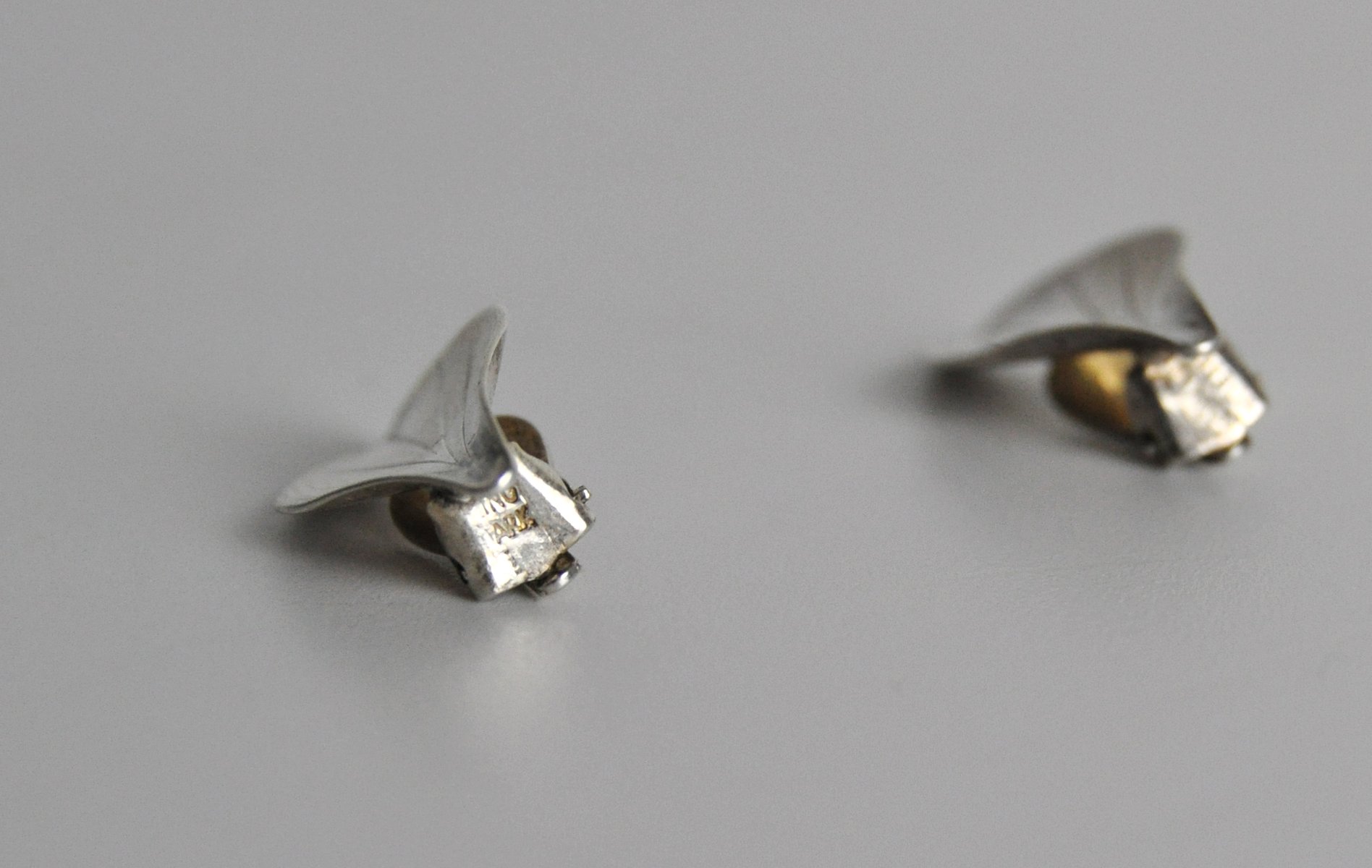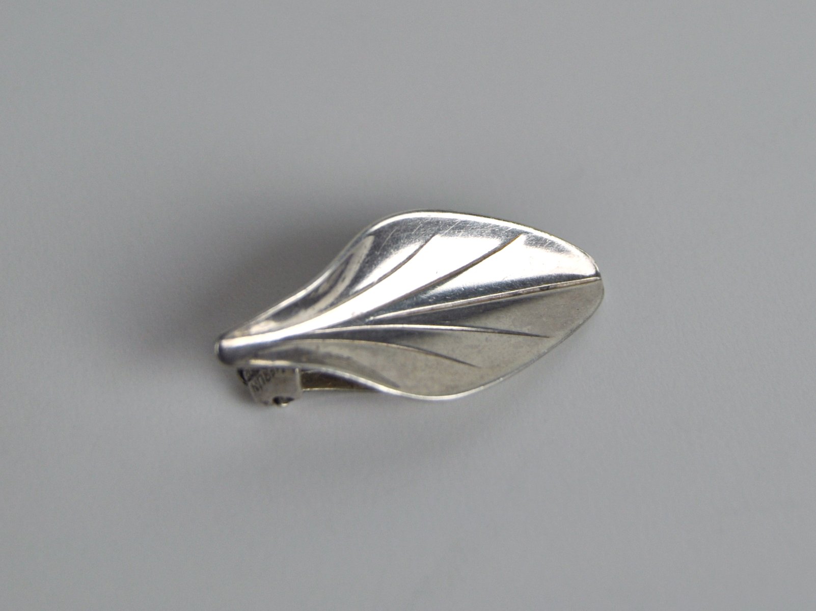 Pendientes modernistas en forma de hoja de plata de ley de Hermann Siersbøl, años 50. Juego de 2