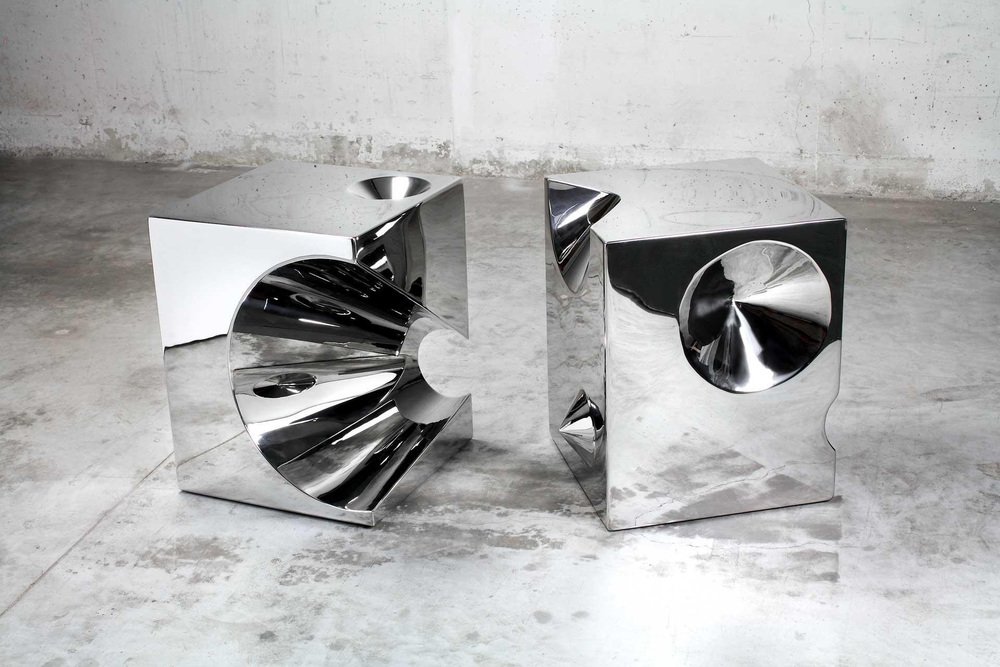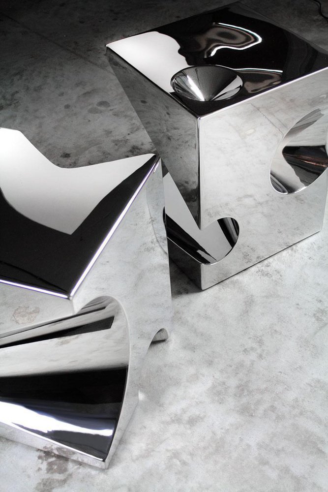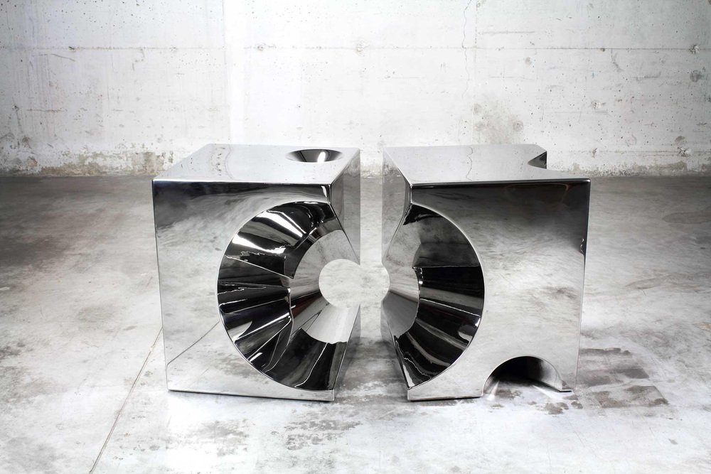 ¡Piérdete! Mesas auxiliares C4 y C5 de acero dorado de Barberini & Gunnell. Juego de 2
