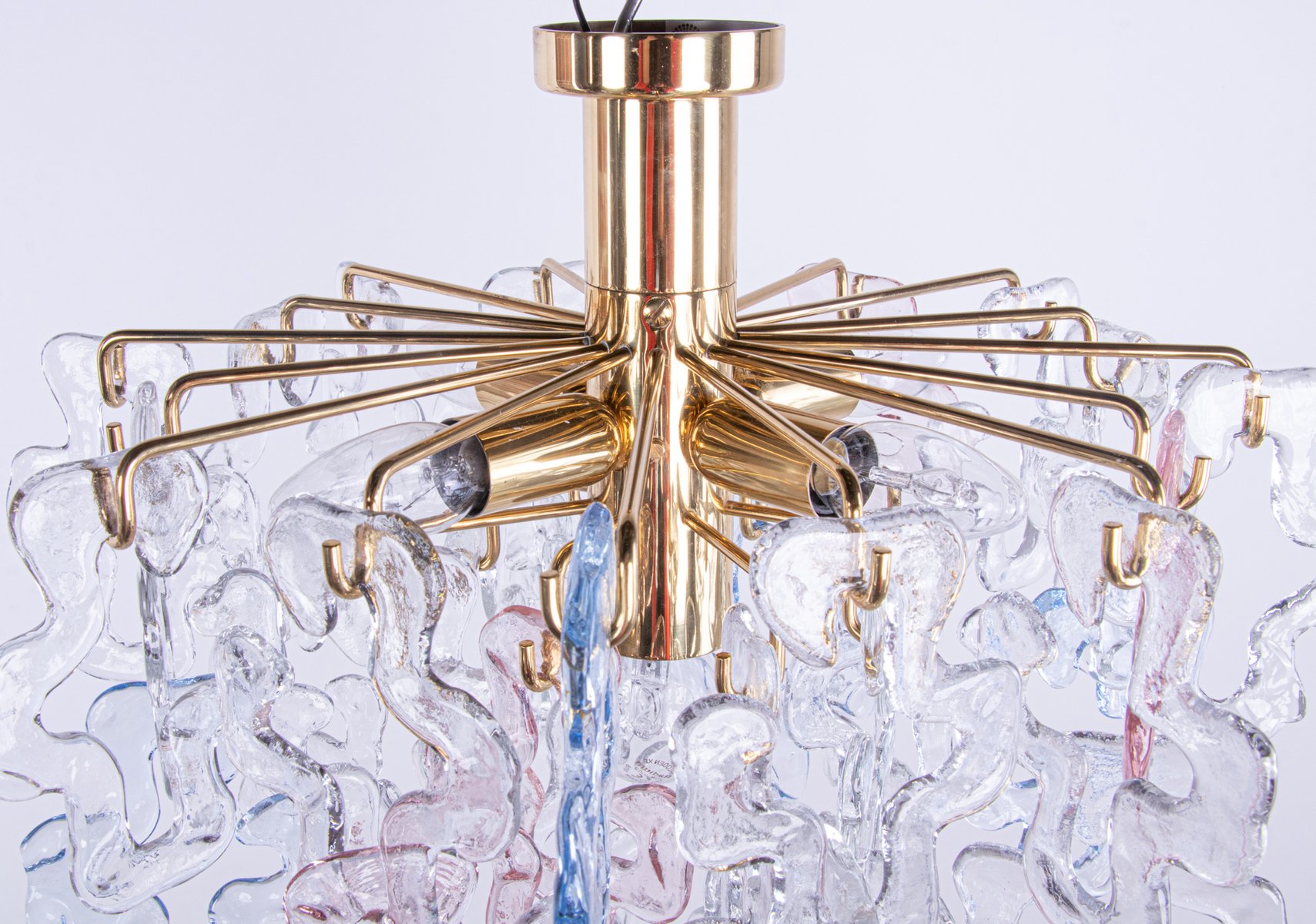 Plafón de latón y cristal de Murano de JT Kalmar para Kalmar, años 60