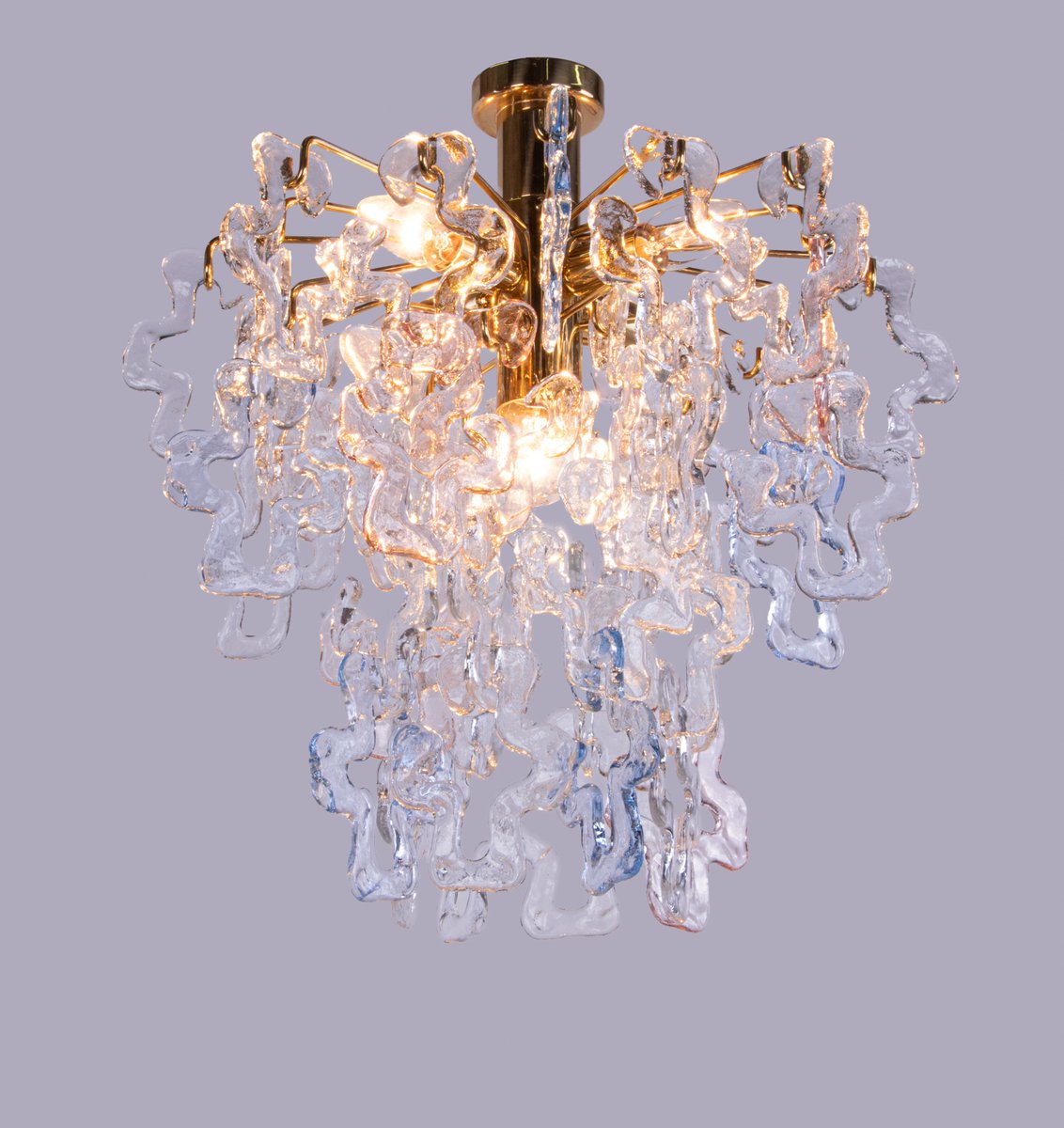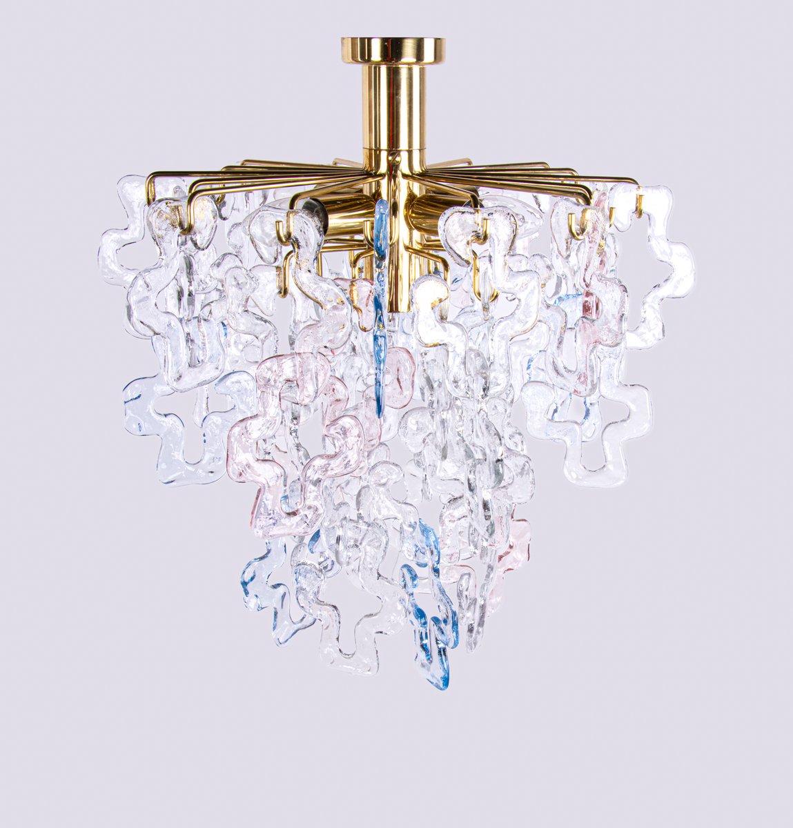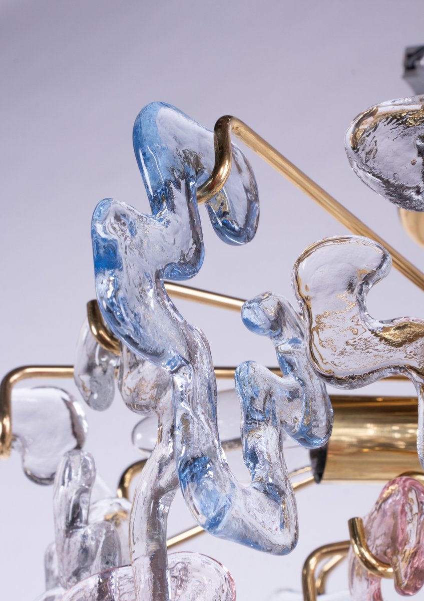 Lámpara de araña alemana en forma de lágrima de cristal de Murano y latón plateado de Palwa, años 70