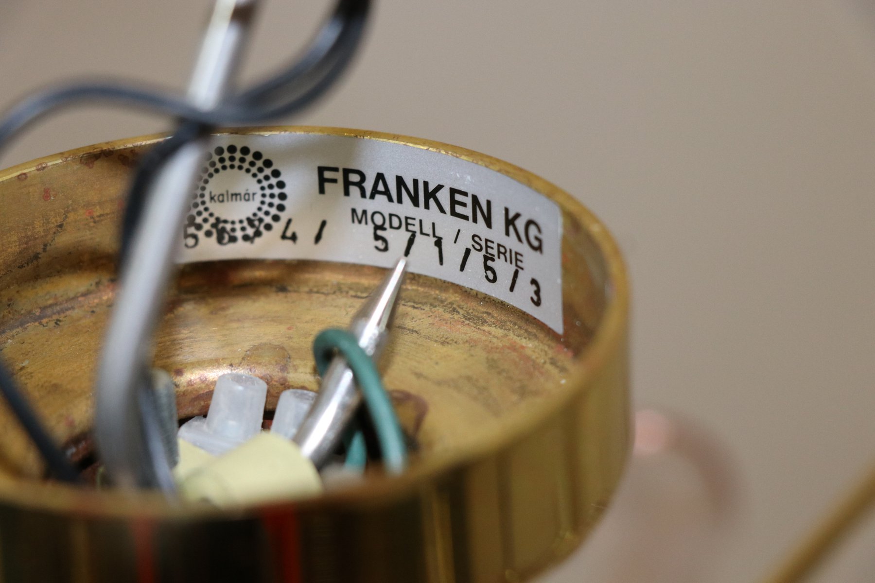 Lámpara de araña modernista grande de latón de JT Kalmar, años 60