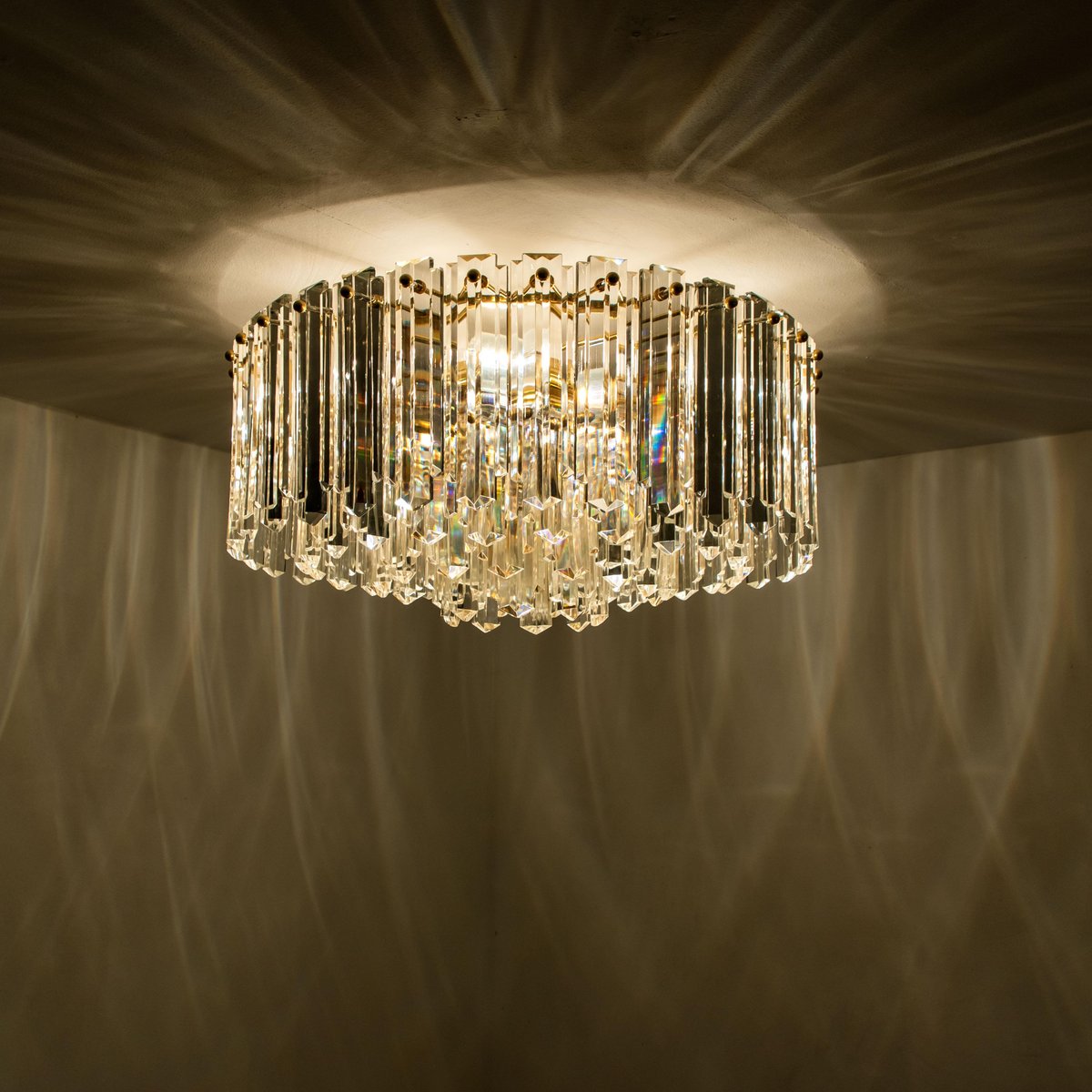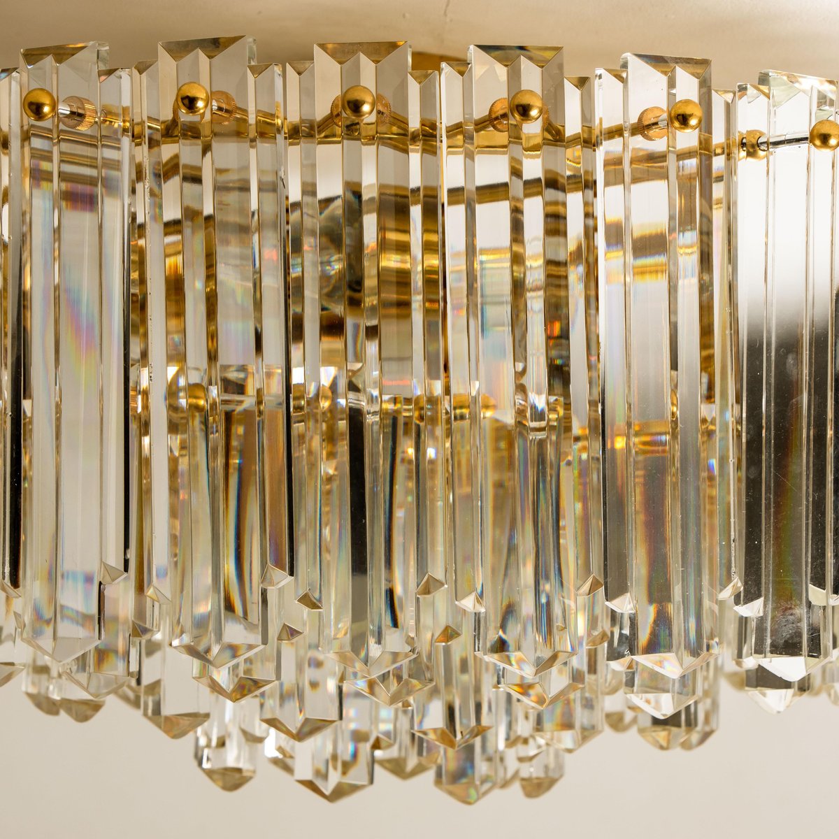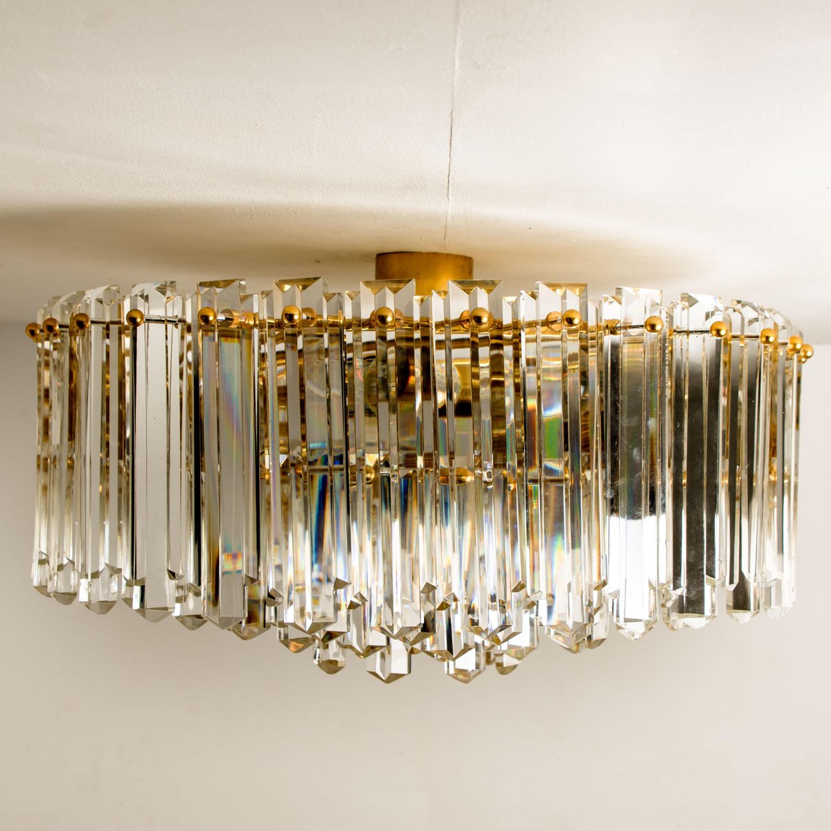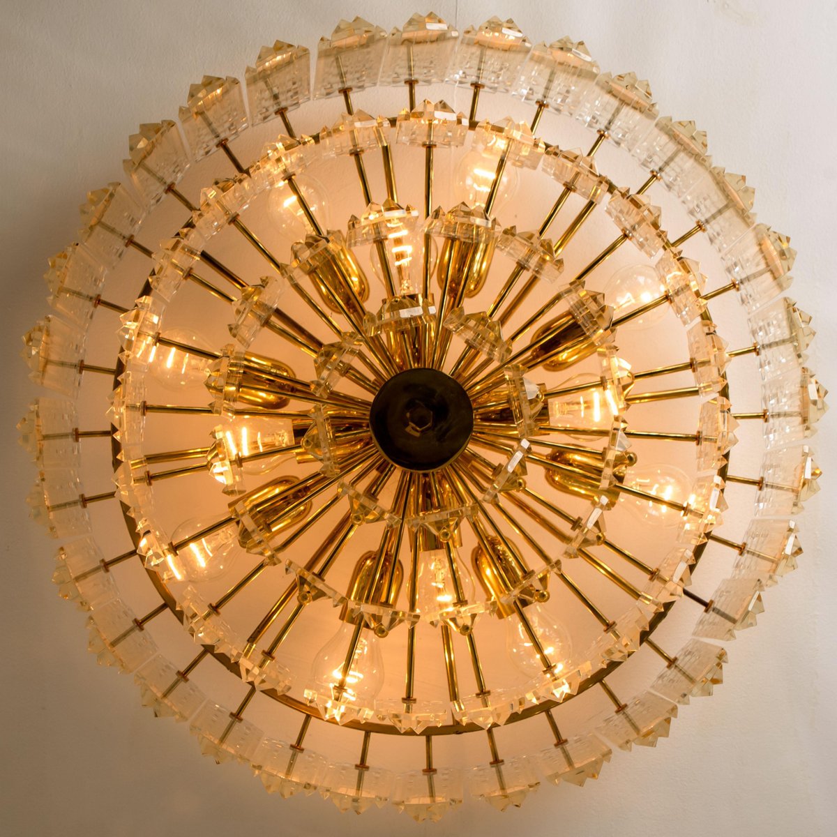Plafón Prims grande facetado y latón dorado de JT Kalmar, años 70