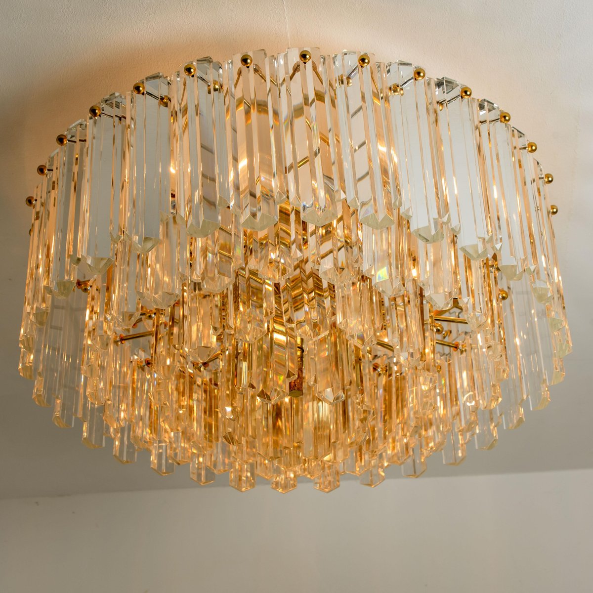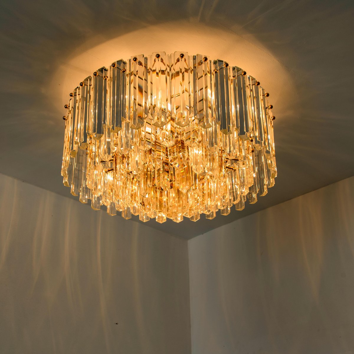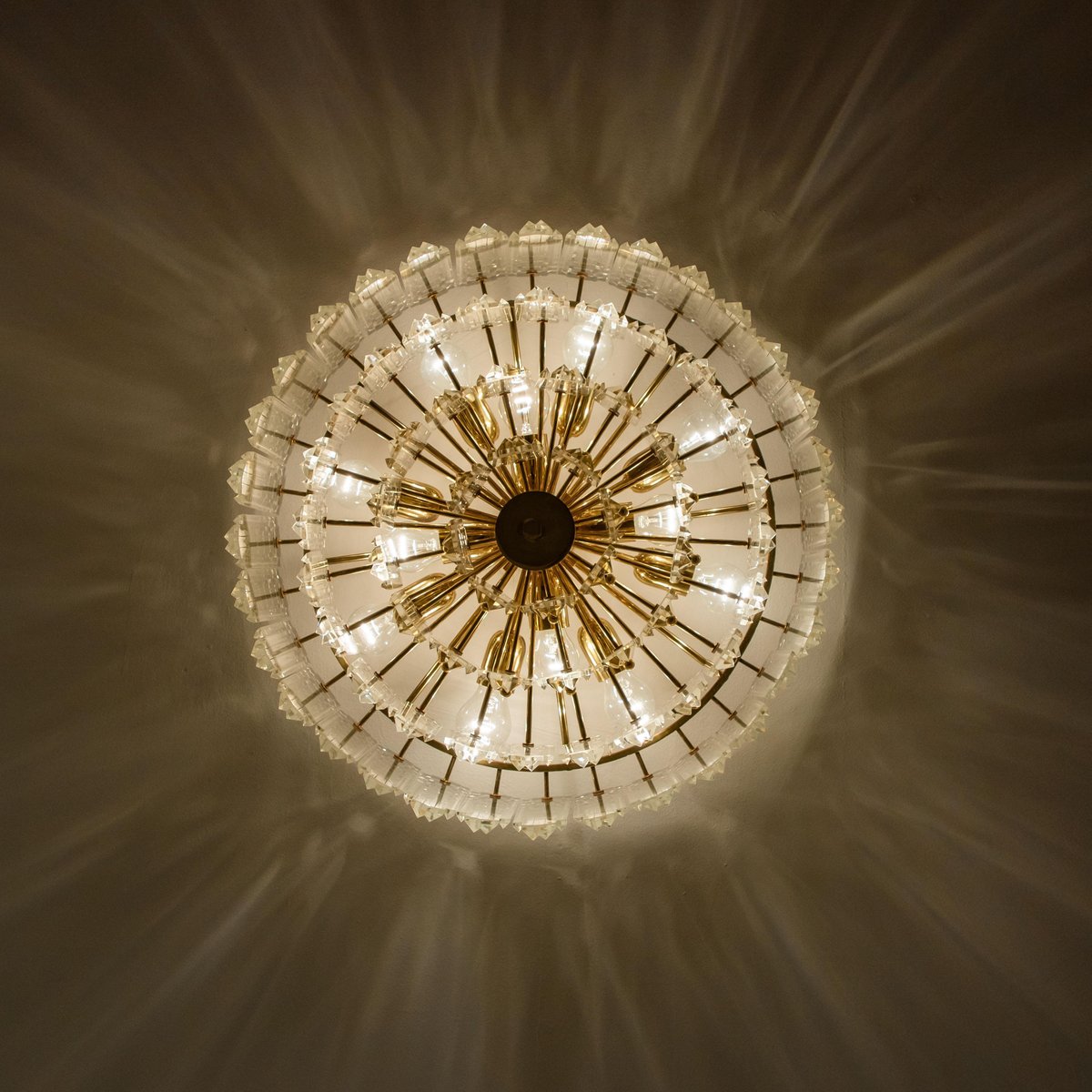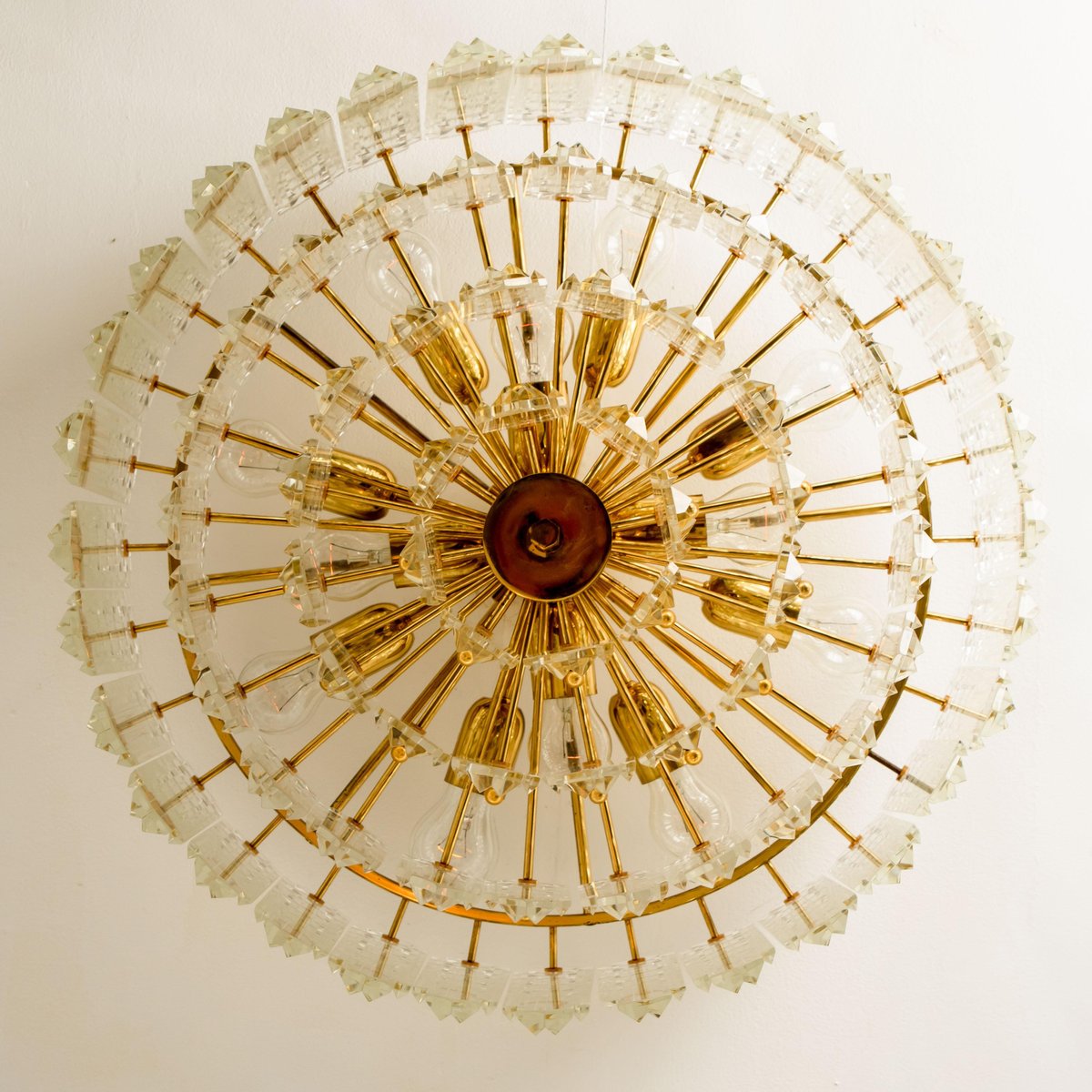 Plafón Prims grande facetado y latón dorado de JT Kalmar, años 70