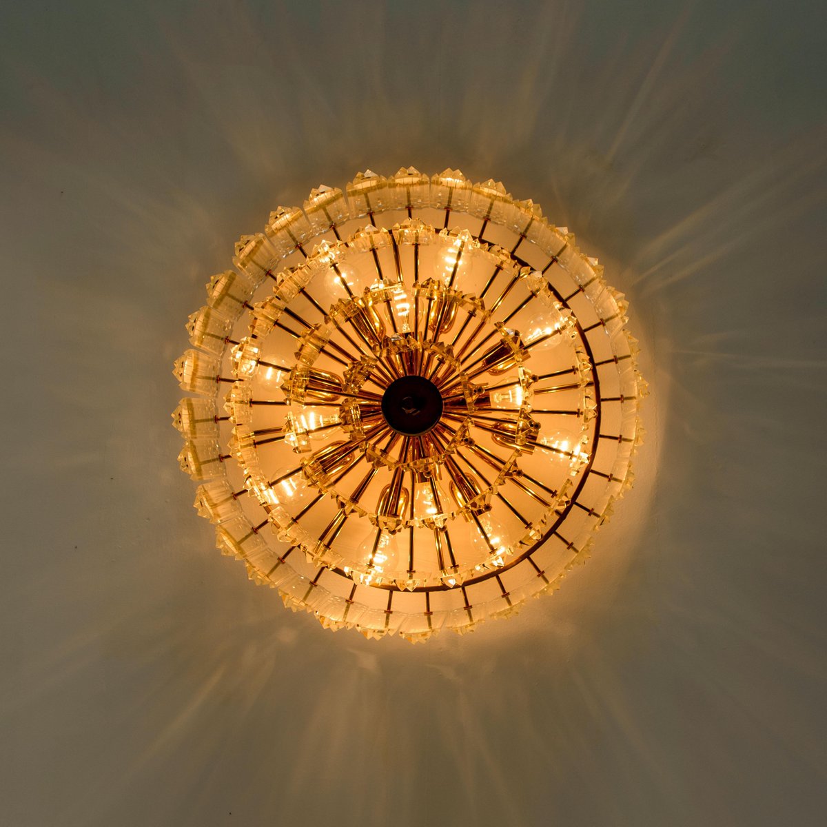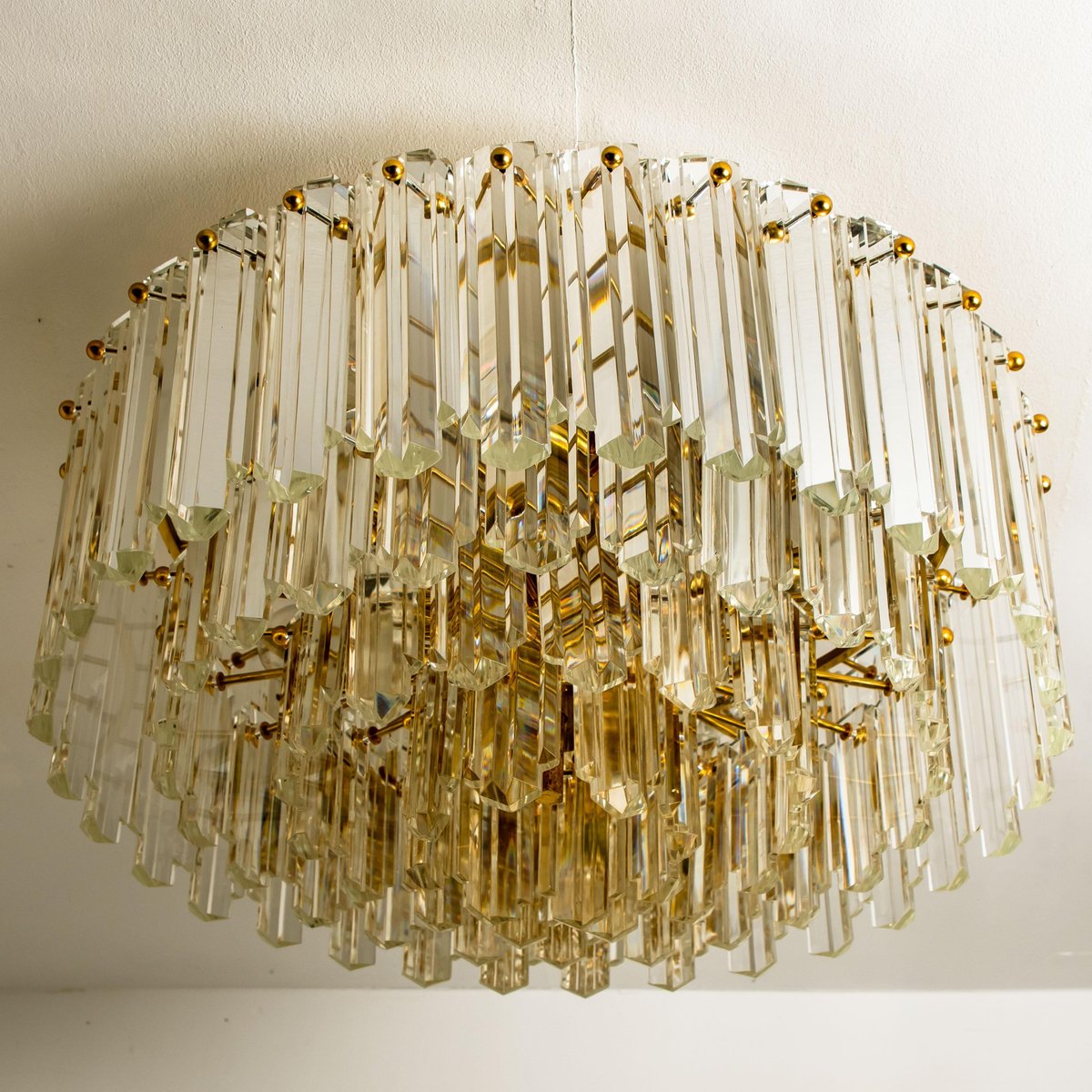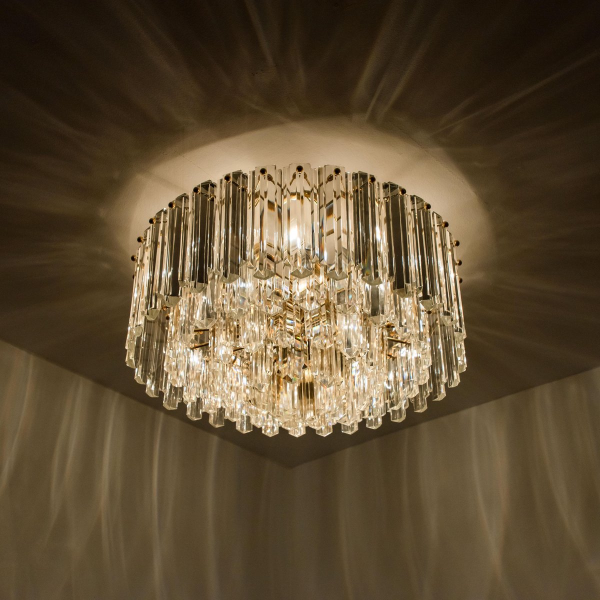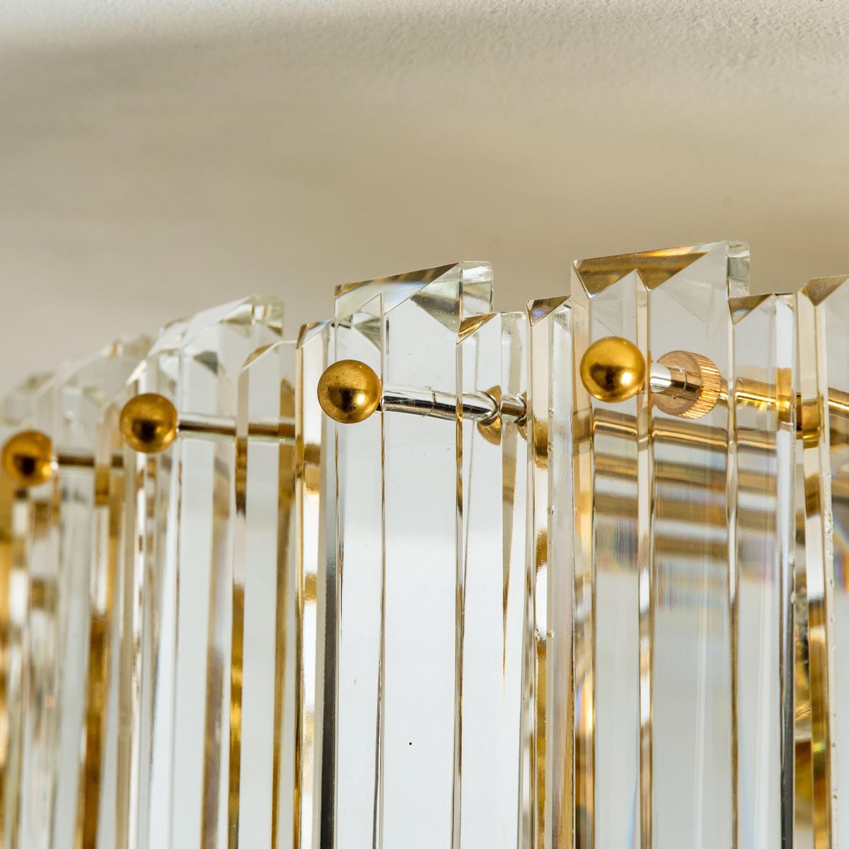Plafón Prims grande facetado y latón dorado de JT Kalmar, años 70
