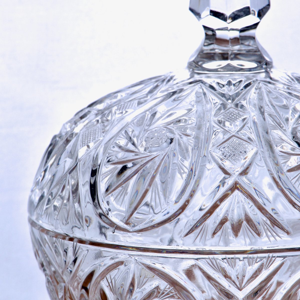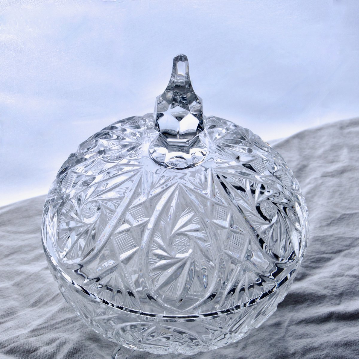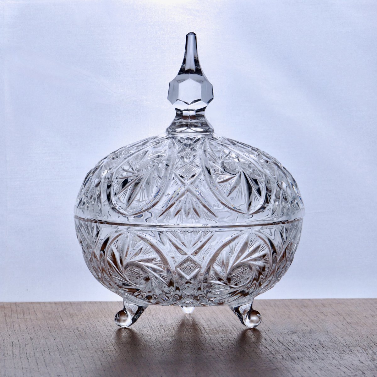 The lid is topped with a faceted pommel ending in a slender point.