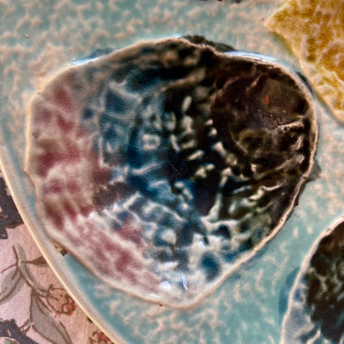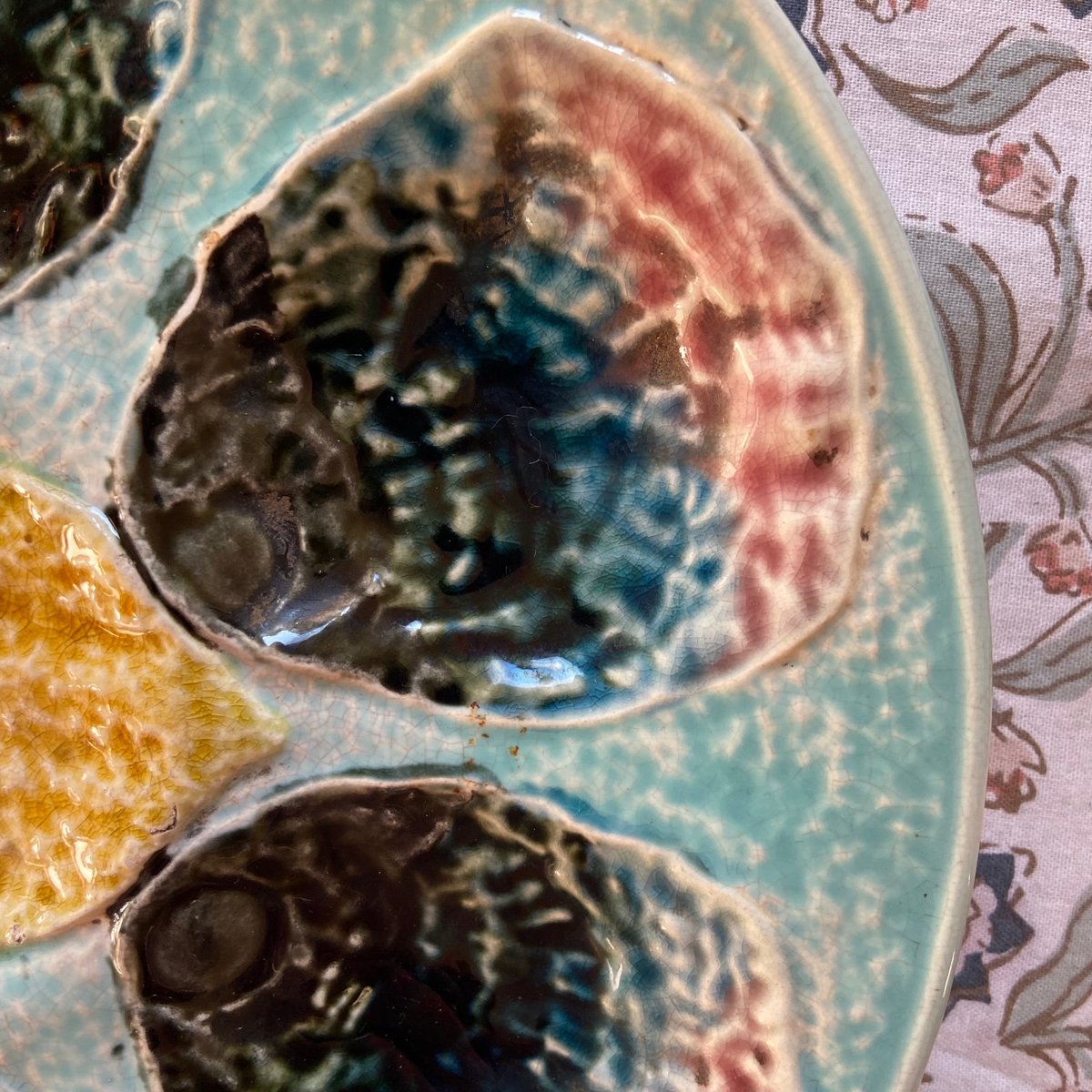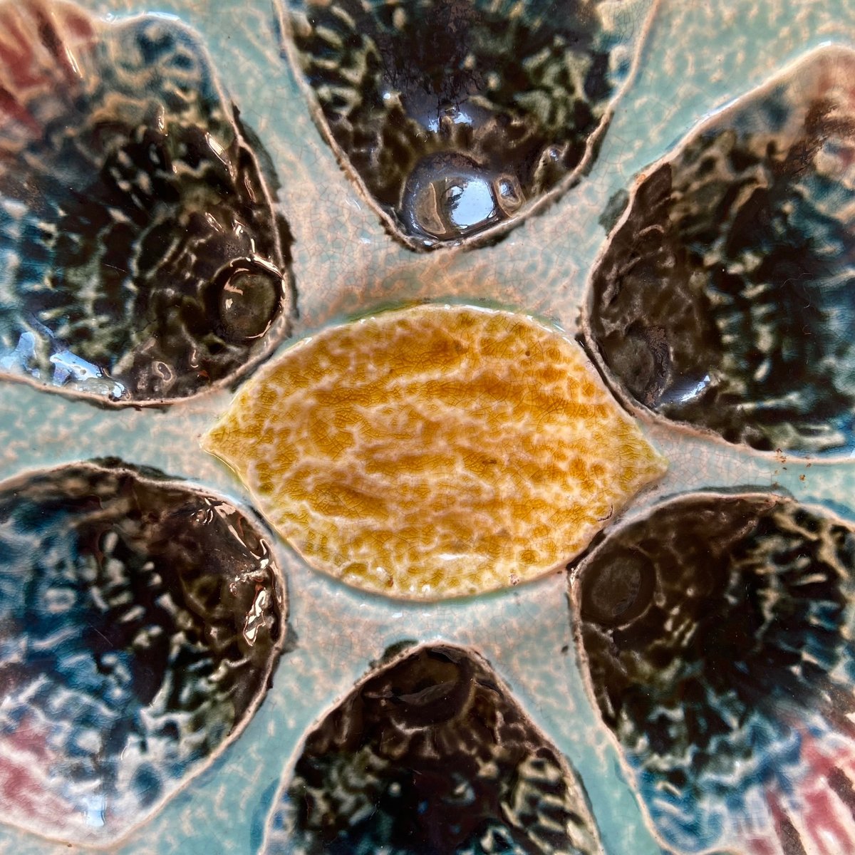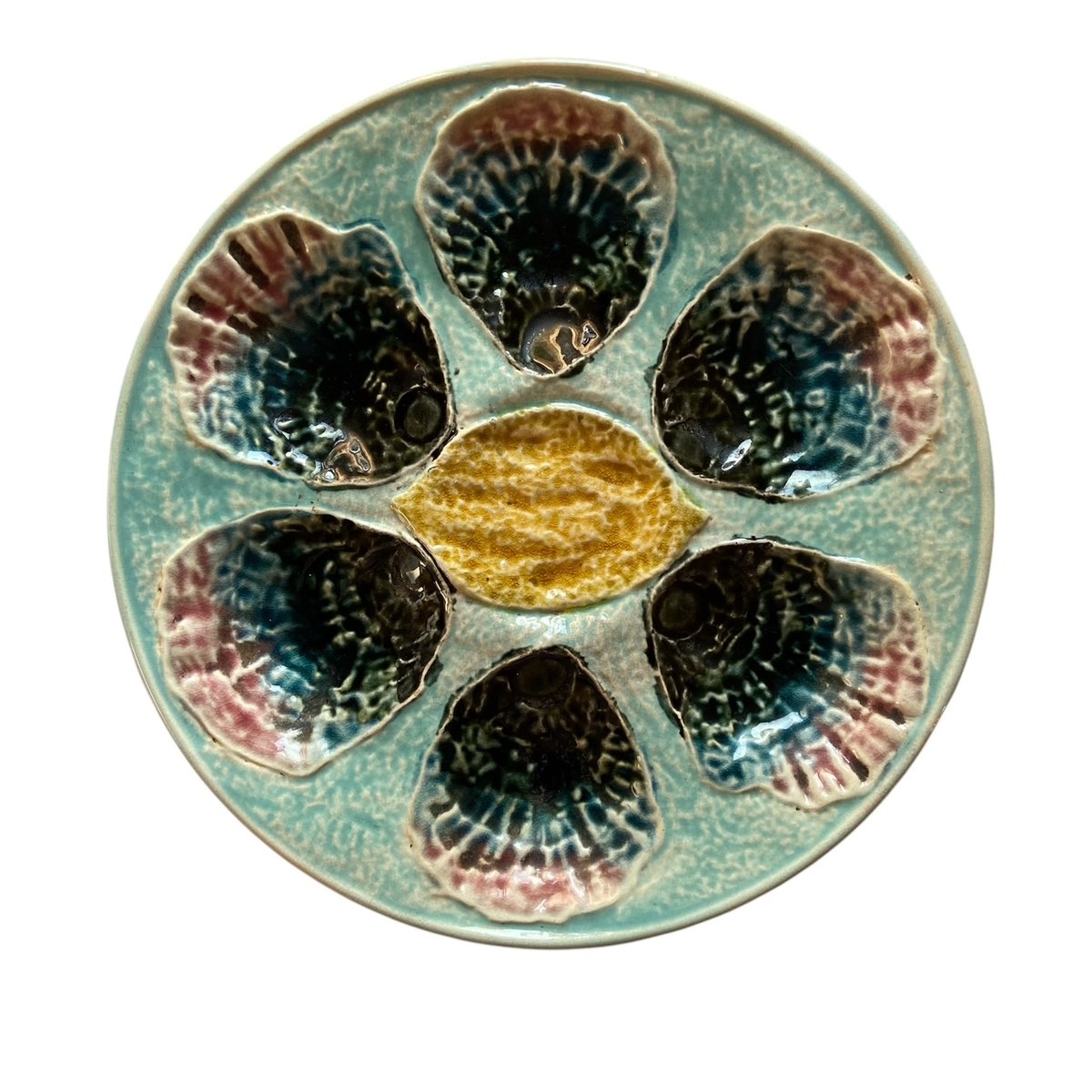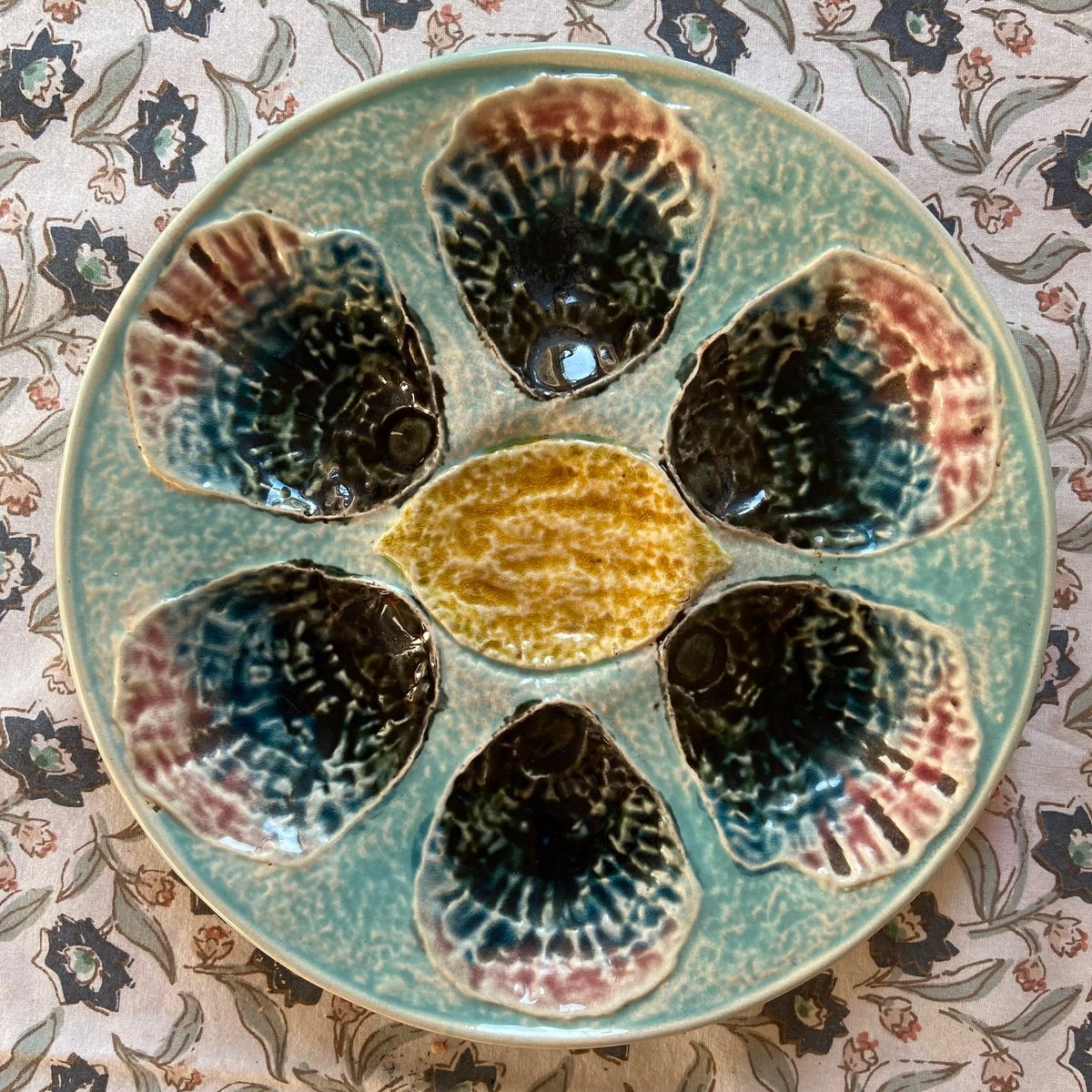 Plato de ostras de mayólica francesa, siglo XIX