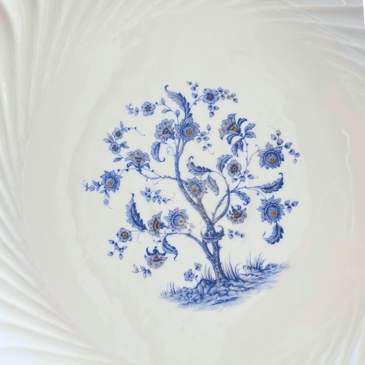 Eleva tu mesa con este exquisito plato de porcelana vintage de Haviland Limoges, con el elegante motivo ""Arbre de Vie"" (Árbol de la Vida) en suave azul cobalto.