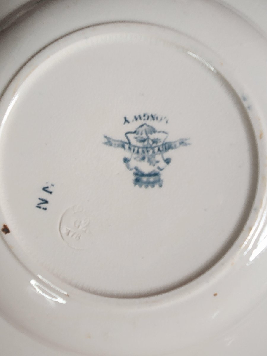 The factory stamp is clear on the underside with the pattern name, Byzantine Longwy, terre de fer, ironstone. The faïencerie et émaux (ceramic and enamel) creators of Longwy begun their business in 1798 and are still producing today.
