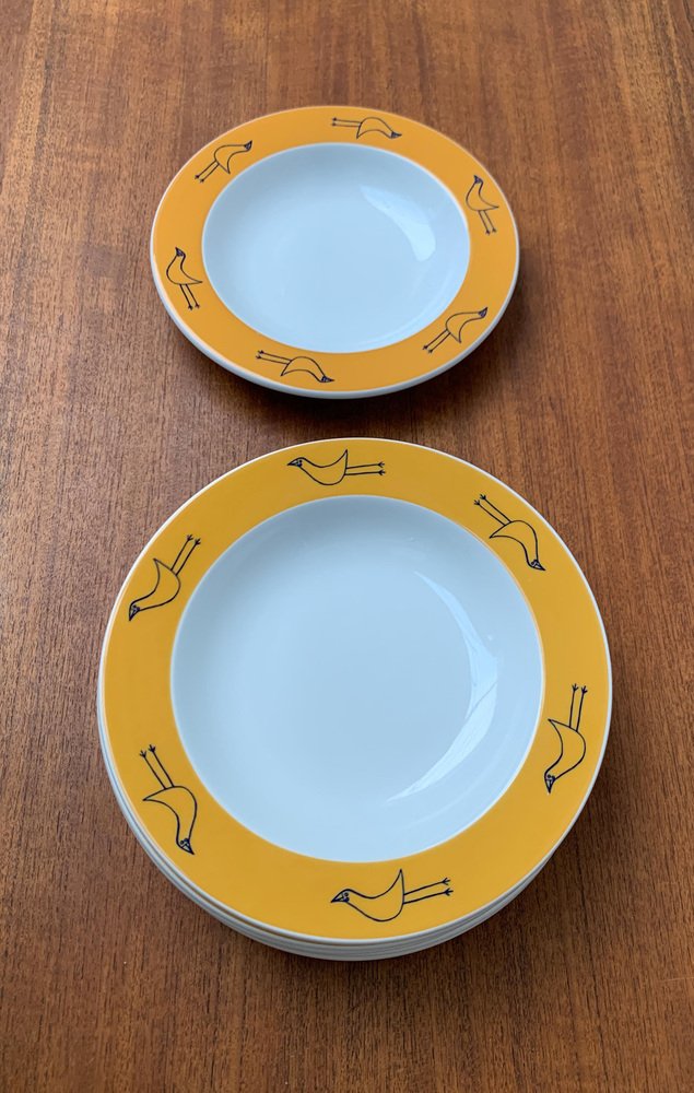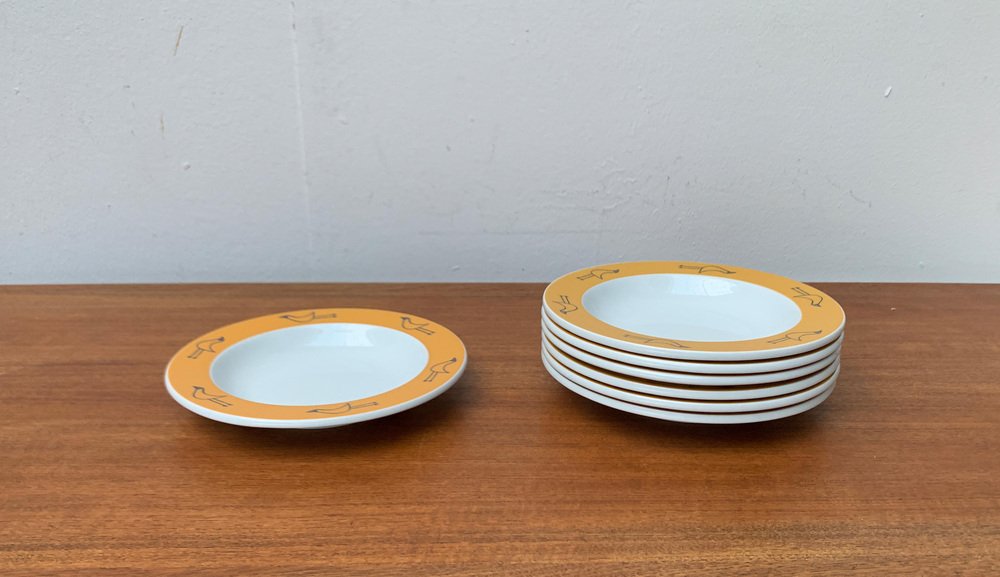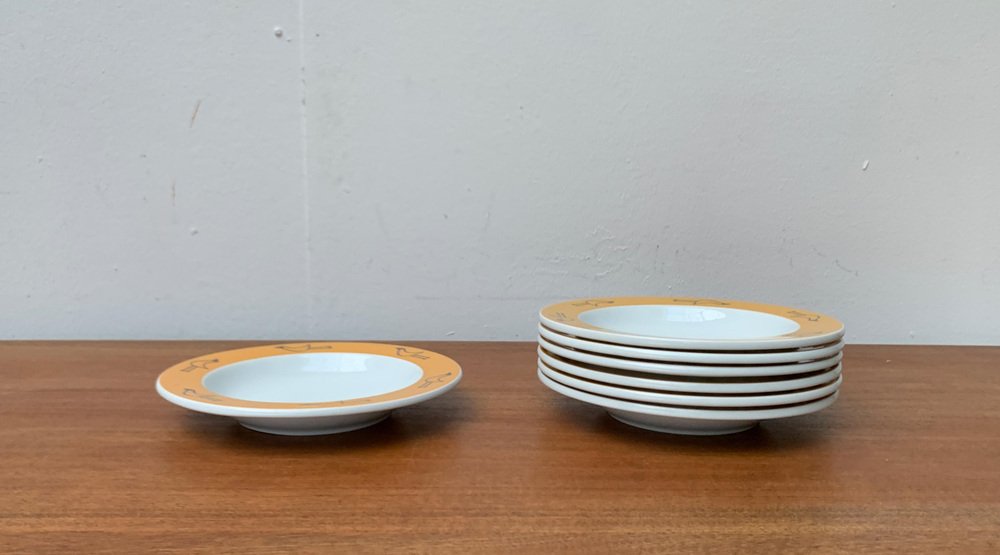 Platos de sopa alemanes posmodernos de la serie Flying Objects de David Palterer and Sieger Design para Arzberg, años 90. Juego de 7