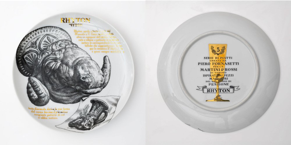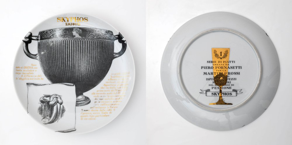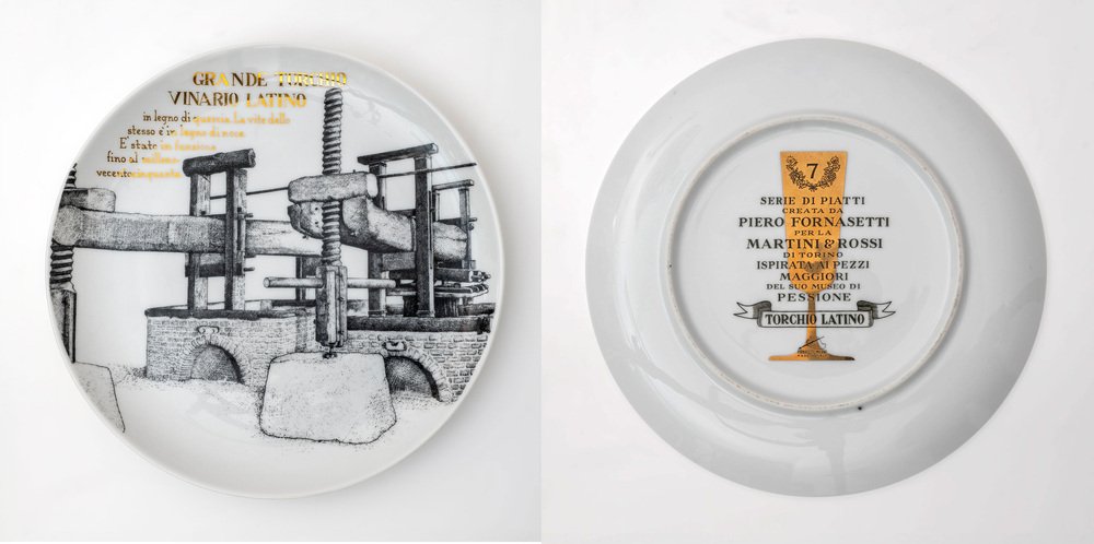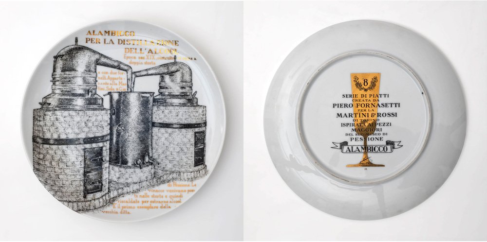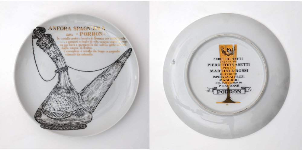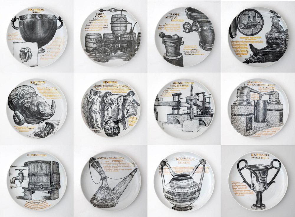Platos decorativos de porcelana de P. Fornasetti para Martini & Rossi, años 60. Juego de 12