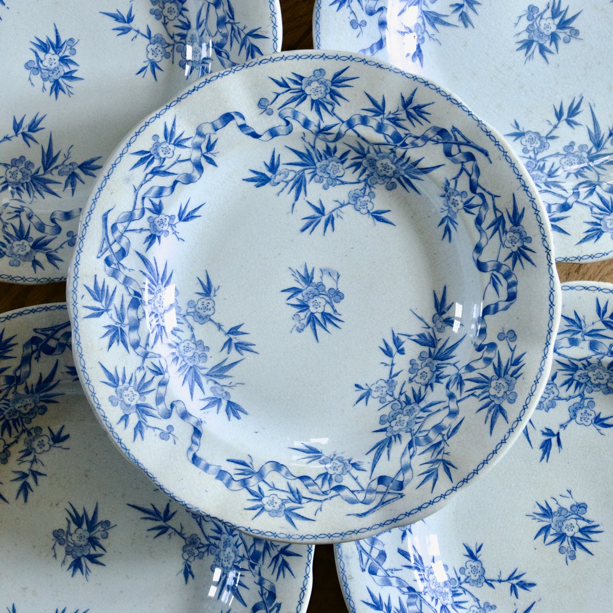 Platos hondos franceses de Ironstone de Sarreguemines, 1880. Juego de 5
