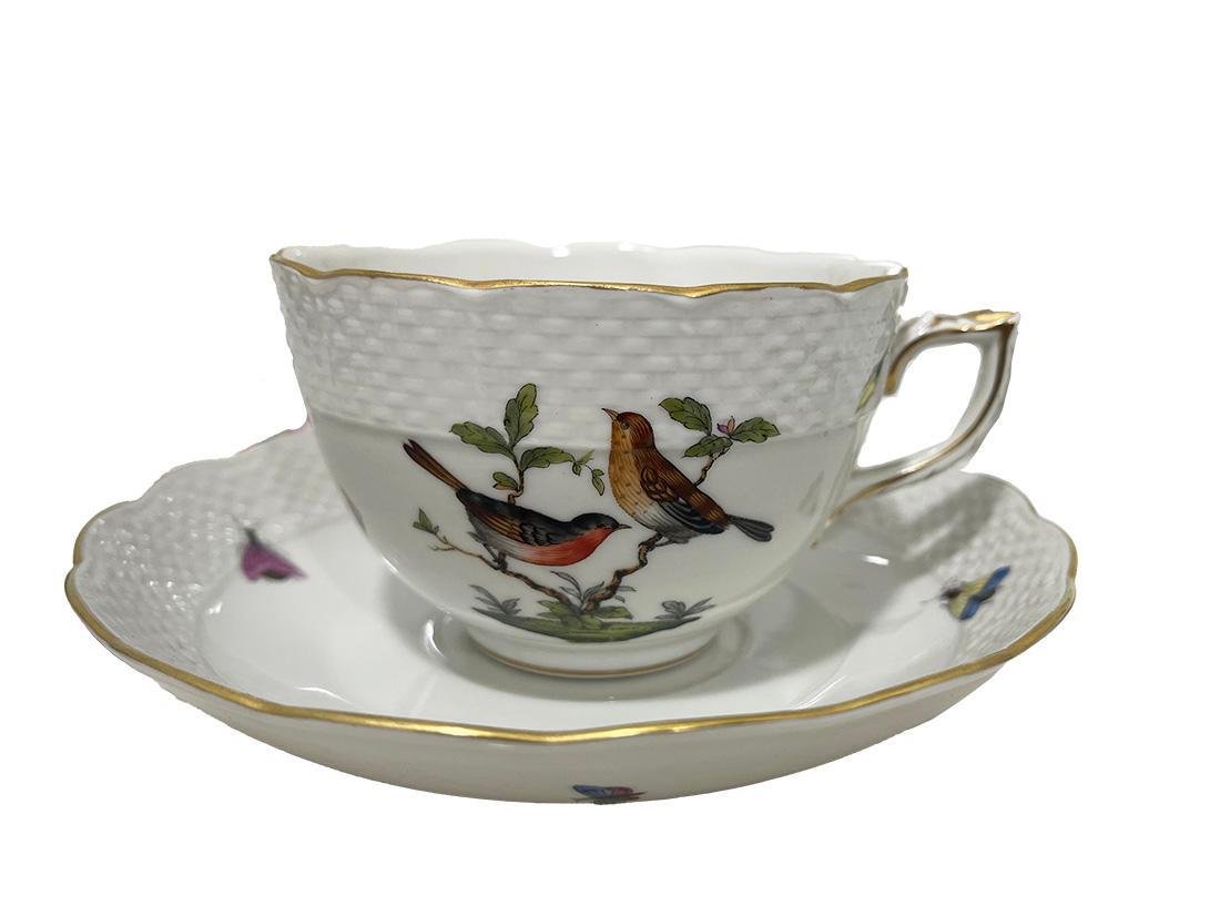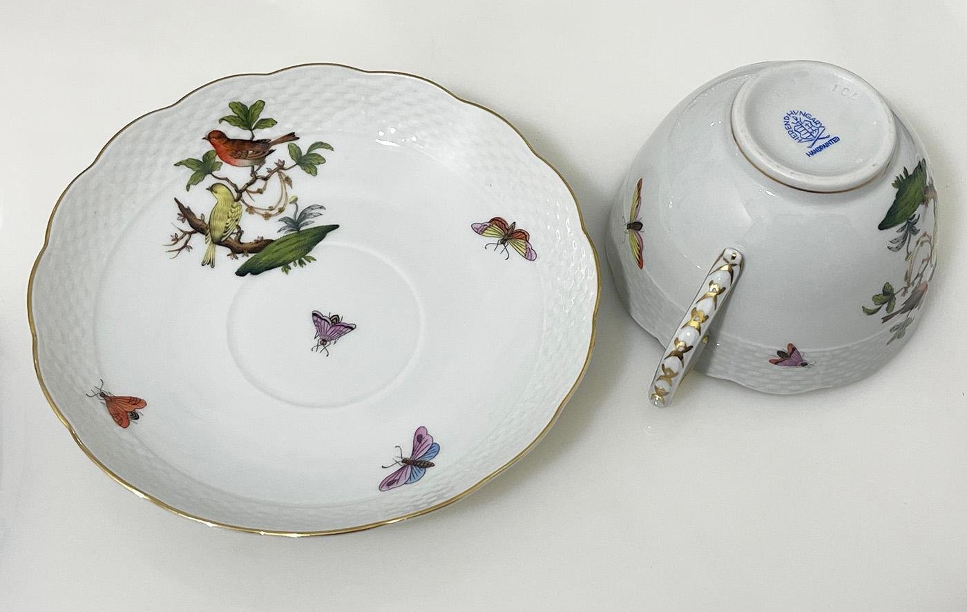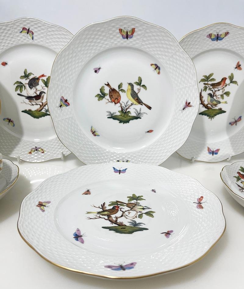 Platos y taza Rothschild de porcelana de Herend Hungary, años 60. Juego de 10