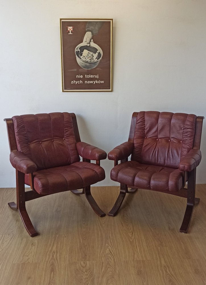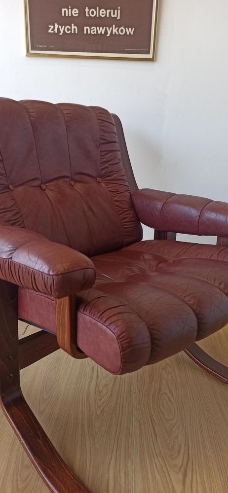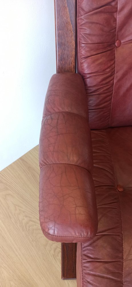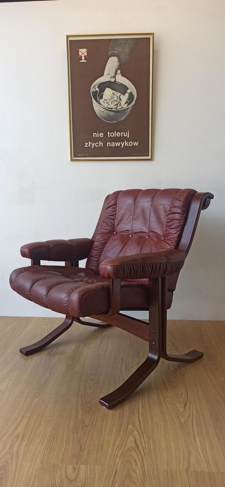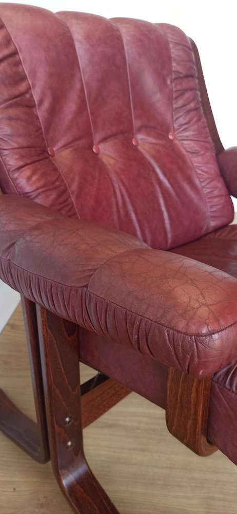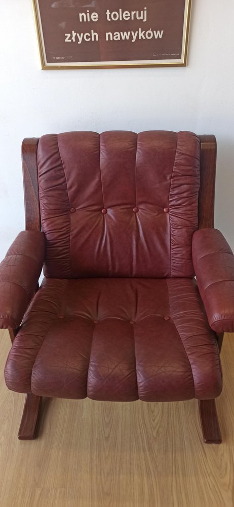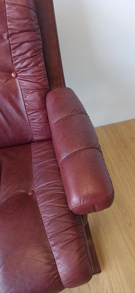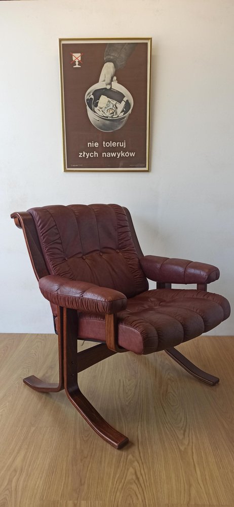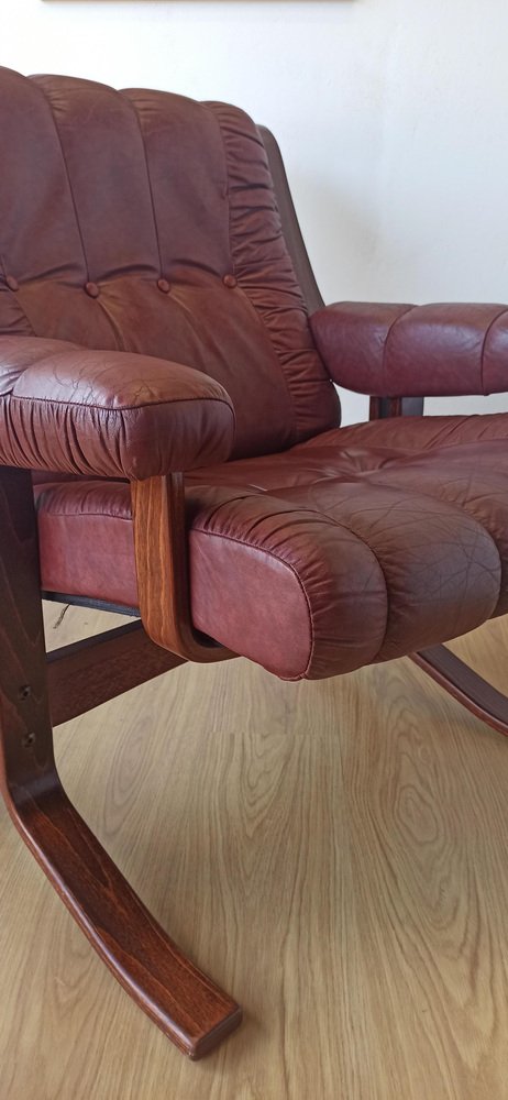 Poltrona escandinava Mid-Century moderna de cuero de Ekornes, años 70