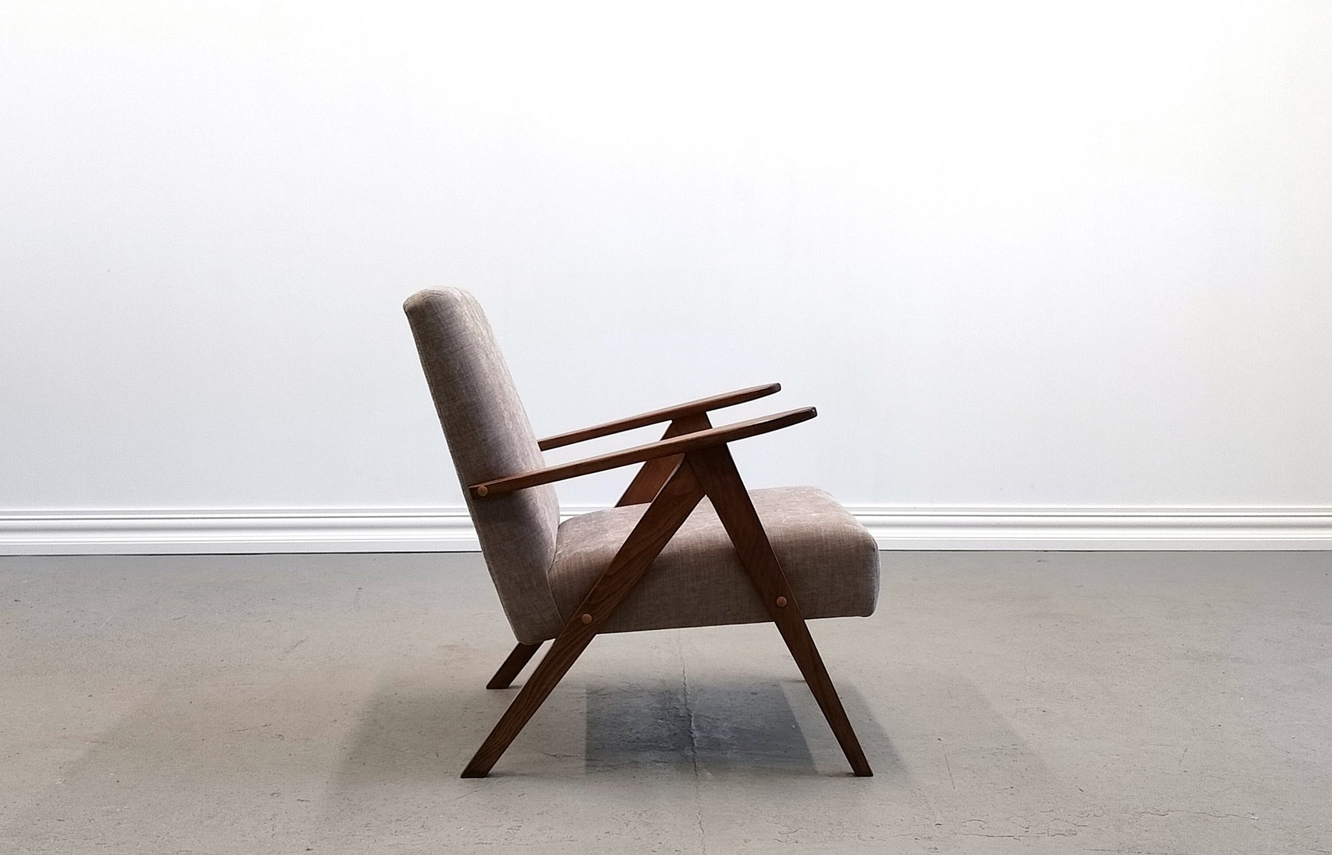 Tnie iconic chair, model B-310 VAR, was manufactured in Poland during the 1960s and holds a special place in design history. Originally produced primarily for export, only a limited number were available in the local market, making it a rare and sought-after piece.