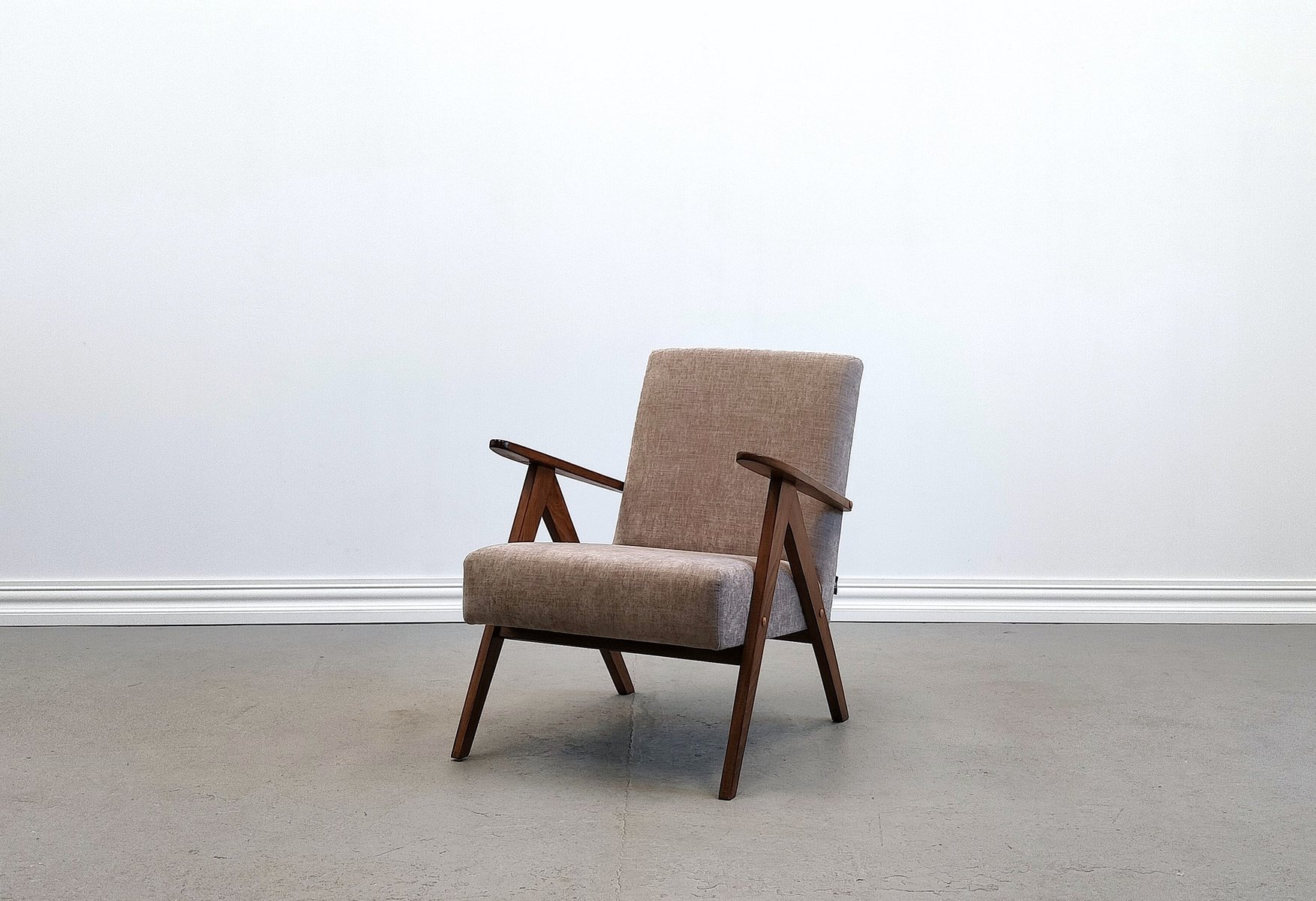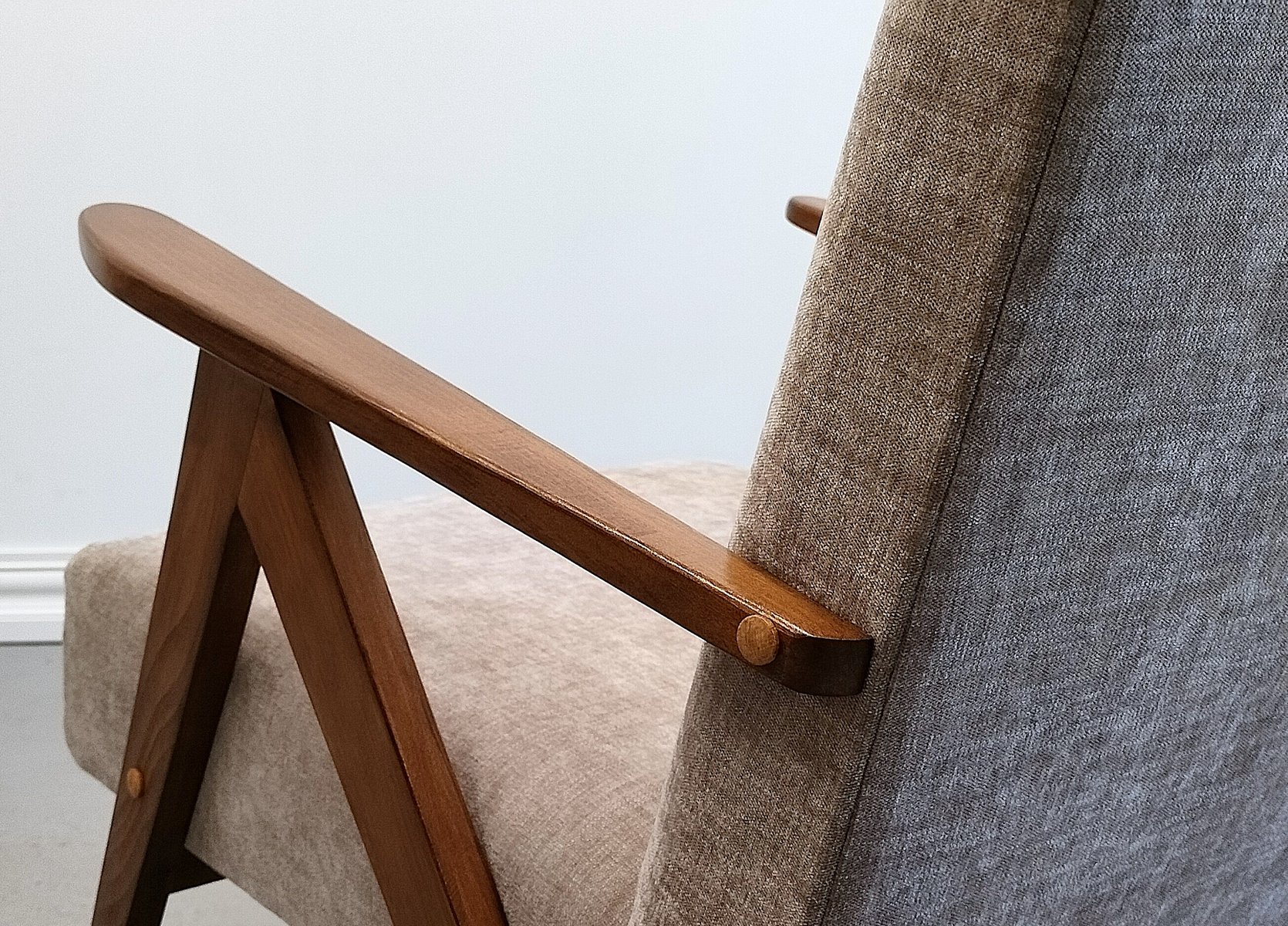 El emblemático sillón B-310 VAR se fabricó en Polonia en la década de 1960 y ocupa un lugar especial en la historia del diseño. En un principio se fabricaba principalmente para la exportación, por lo que el mercado local sólo disponía de un número limitado de unidades, lo que la convierte en una pieza rara y codiciada.