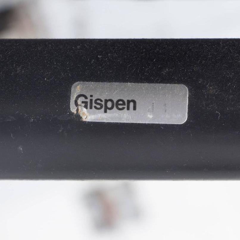 Mesa de comedor con patas en forma de horquilla de metal negro y tablero de vidrio, años 60