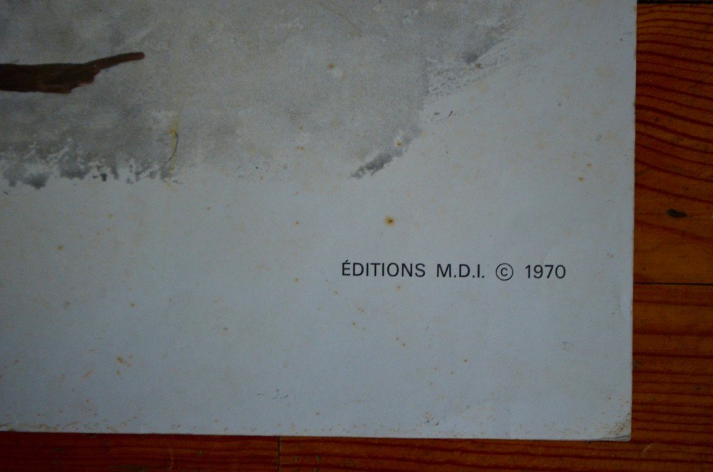 Los carteles publicados por MDI (Maison Des Instituteurs) en 1970 son de papel cartón grueso. Los colores siguen siendo muy bonitos y los diseños muy originales. El estado de conservación es bueno, ligeros desgarros discretos pueden marcar los carteles pero no hay que señalar ninguna falta. Una ilustración diferente está presente en la parte delantera y trasera. Tenemos muchos modelos de estas series.