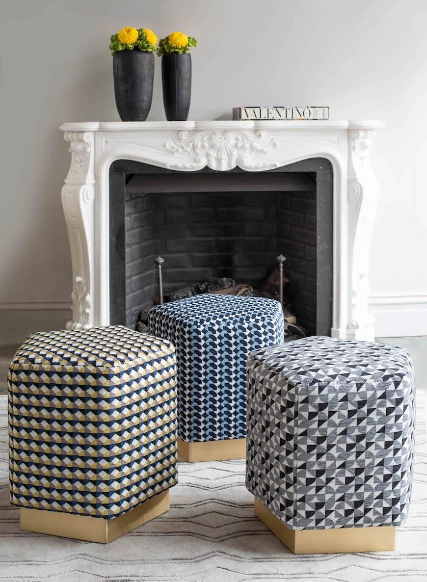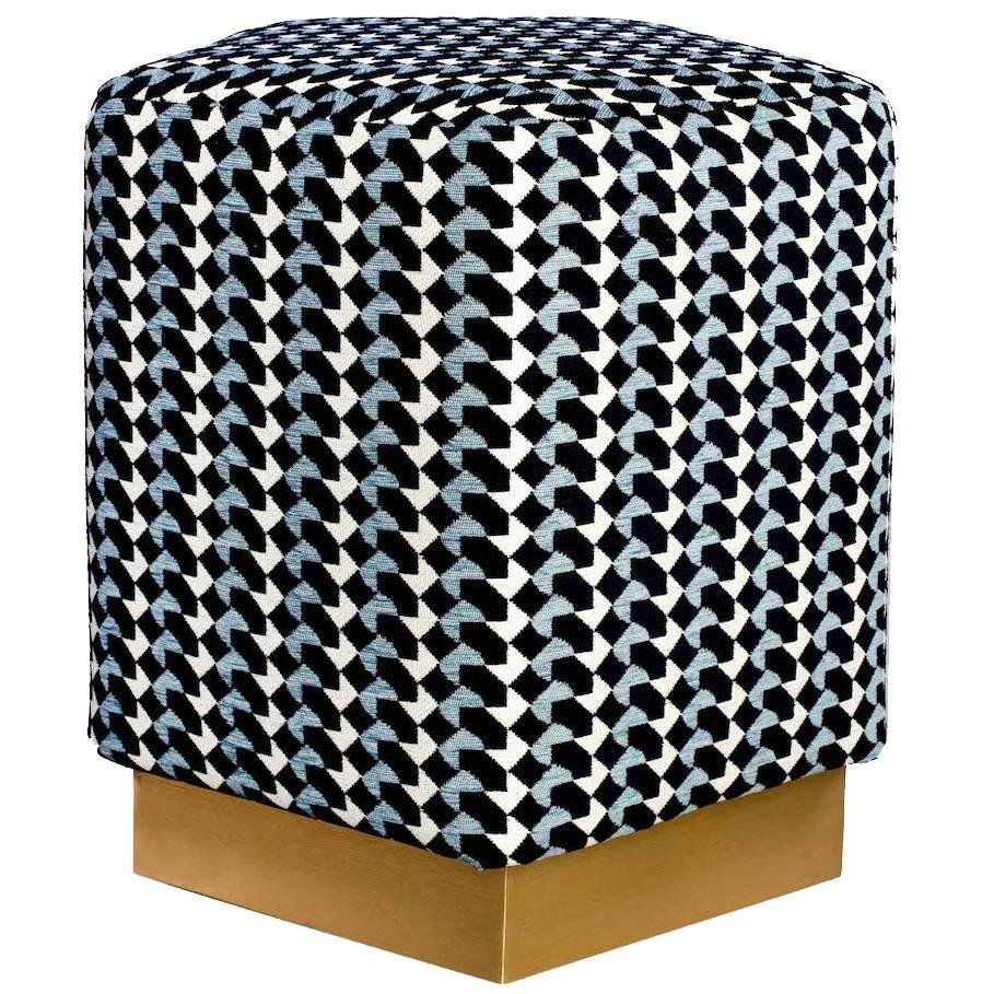 While symmetry is a signature design style of Casa Botelho, the Ermes Pentagon Belo pouf is a visual challenge and balances proportion with peculiarity. The pentagon appears frequently in Casa Botelho's collections and this piece brings all the intriguing attributes of the shape into one luxurious furniture. The pouf is part of the Curvature collection and is available on a plinth in shiny wide brass, blacken steel, or powder-coated in quartz, light bronze, dark bronze, and pitch black. The pouf is handmade with impeccable attention to detail. The price displayed is for the Ermes Pouf with Curvature fabric.