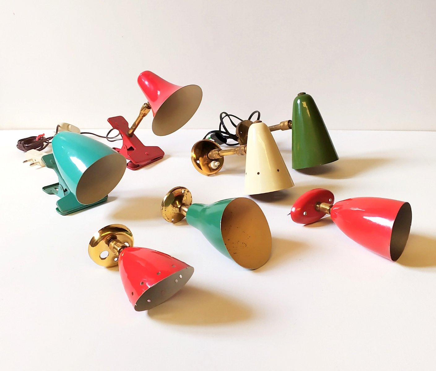 Arredoluce’s vanguard collections ranged from table and floor lamps to sconces and chandeliers, developed in collaboration with design luminaries like Franco Albini, Achille and Pier Castiglioni, Vico Magistretti, Gio Ponti, Ettore Sottsass, Mario Tedeschi, and Nanda Vigo. The company’s modernist sensibilities were expressed in minimalist forms that took advantage of new technologies, often featuring articulated arms and directional shades.