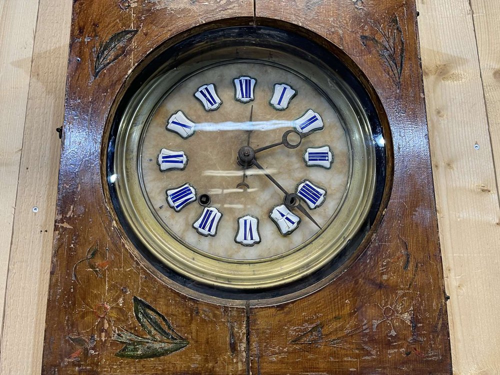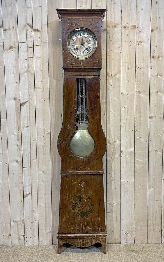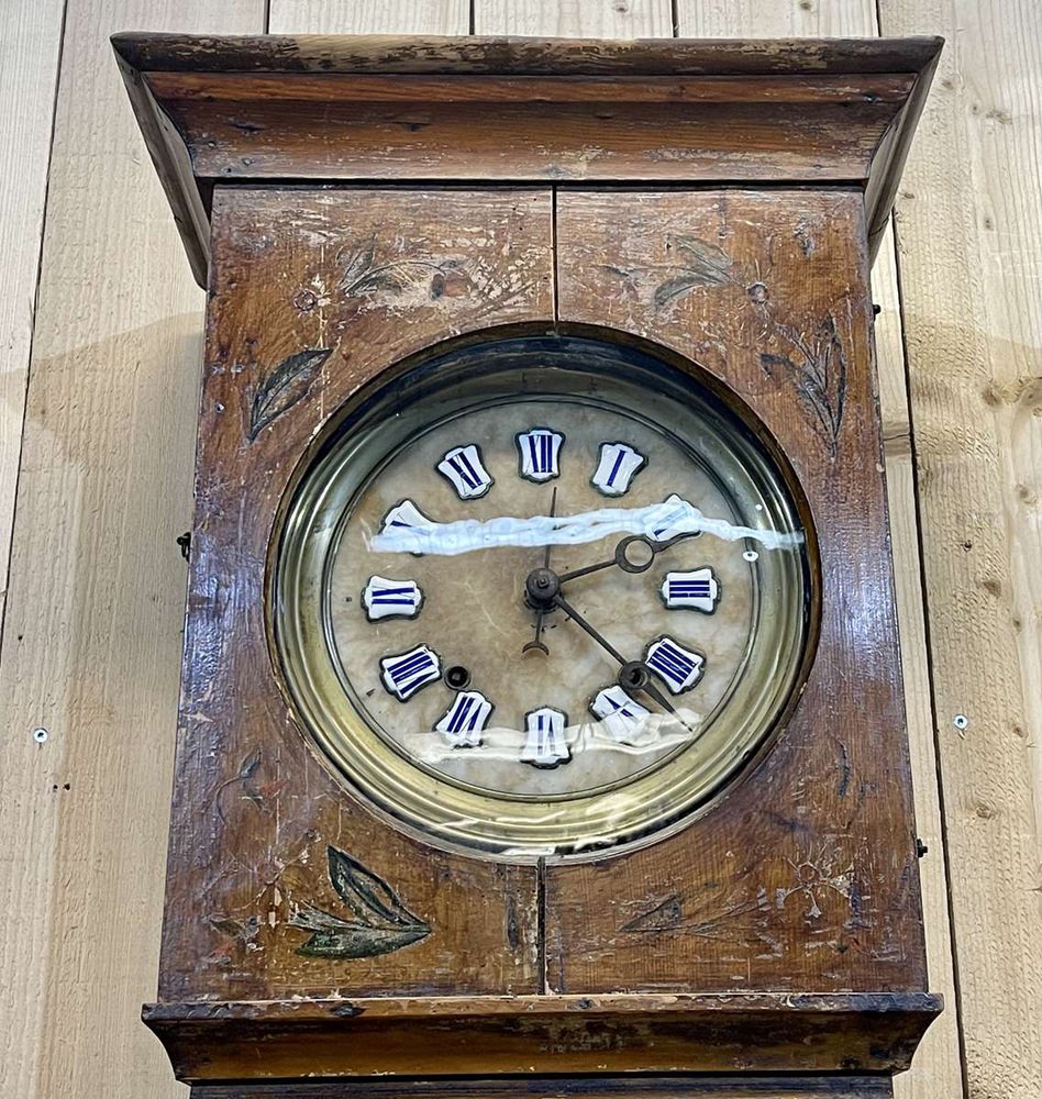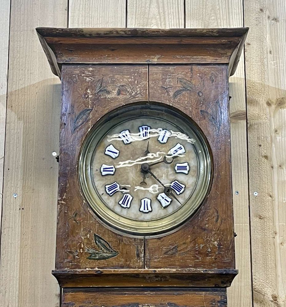 Reloj Comtoise de abeto, siglo XIX con figuras esmaltadas