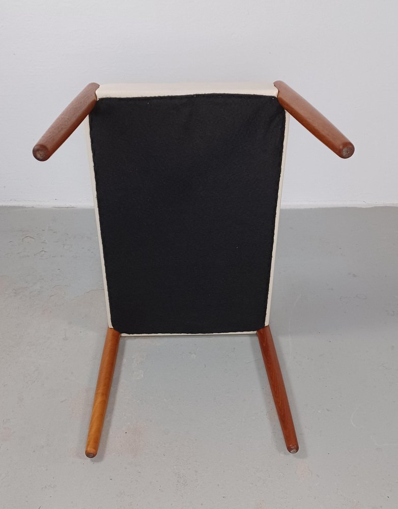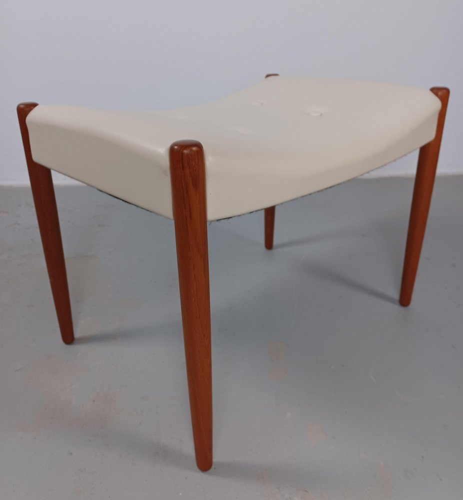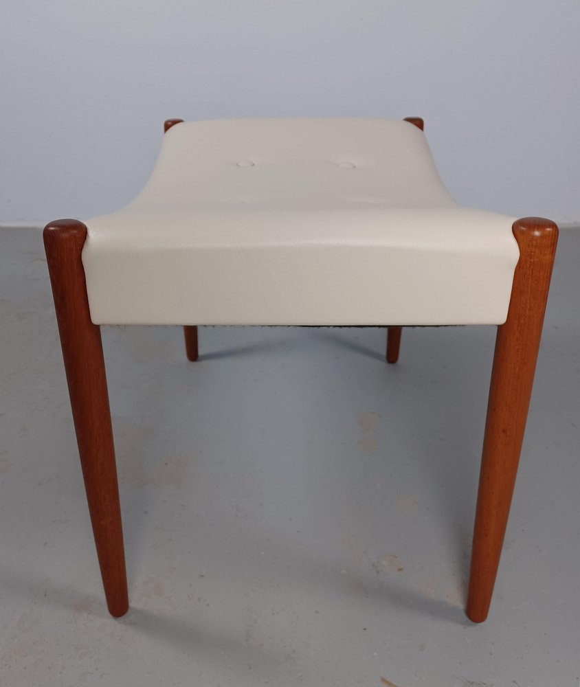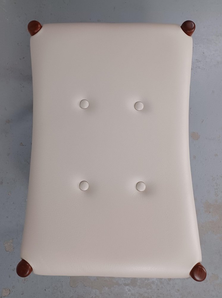 Reposapiés danés completamente restaurado de teca retapizado en cuero crema, años 60