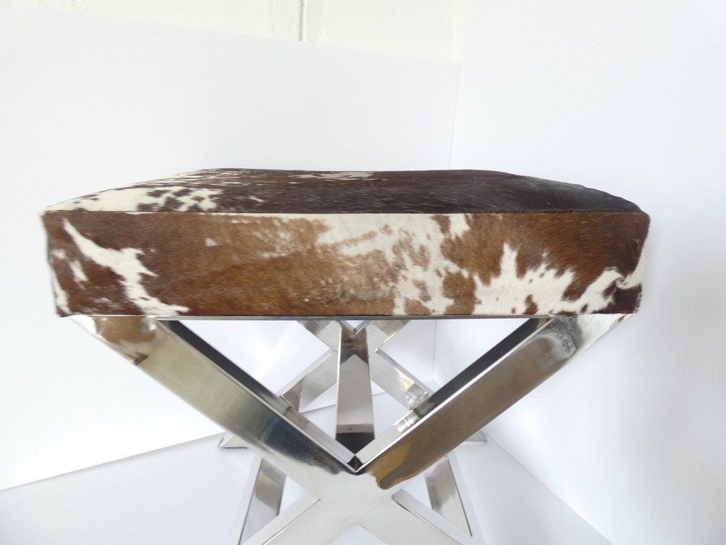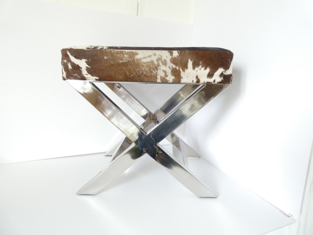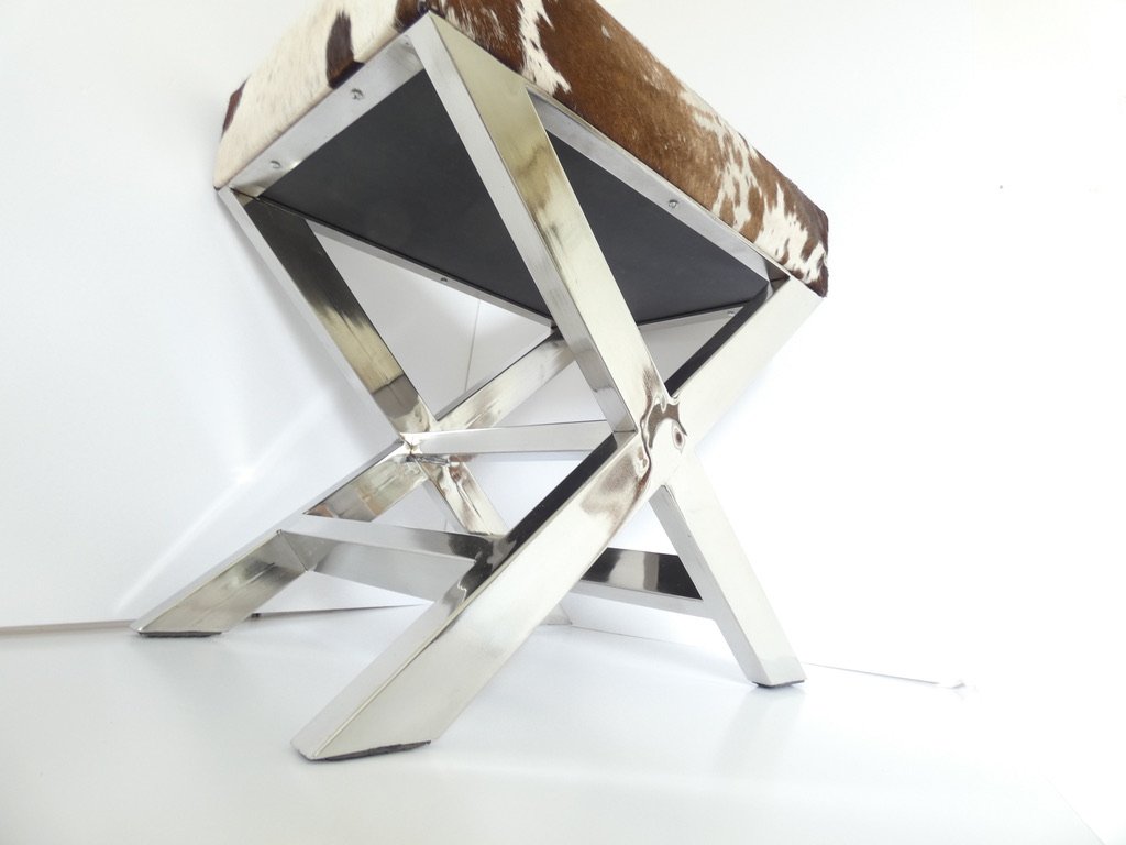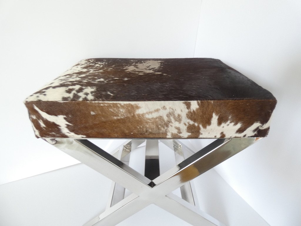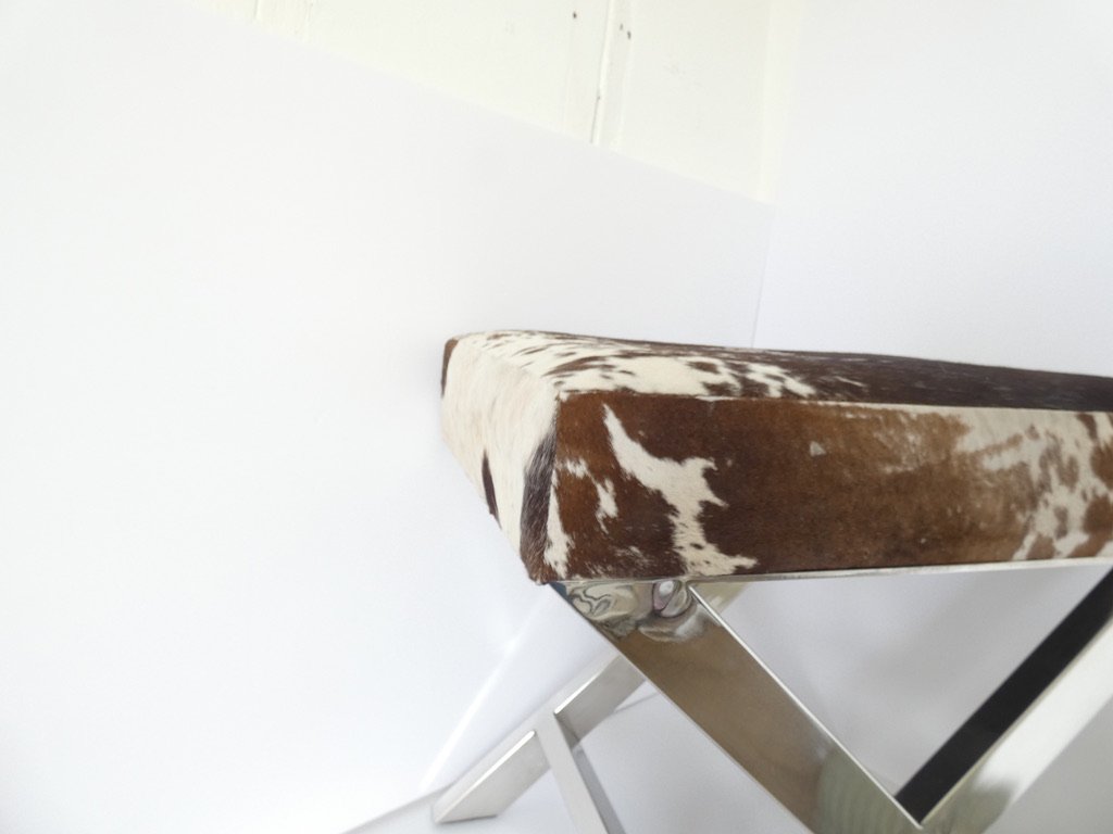 Reposapiés francés vintage de cuero y acero inoxidable atribuido a 23homedesign